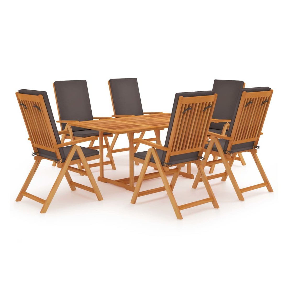 Ensemble à Manger de jardin 7pcs coussins gris Bois teck massif
