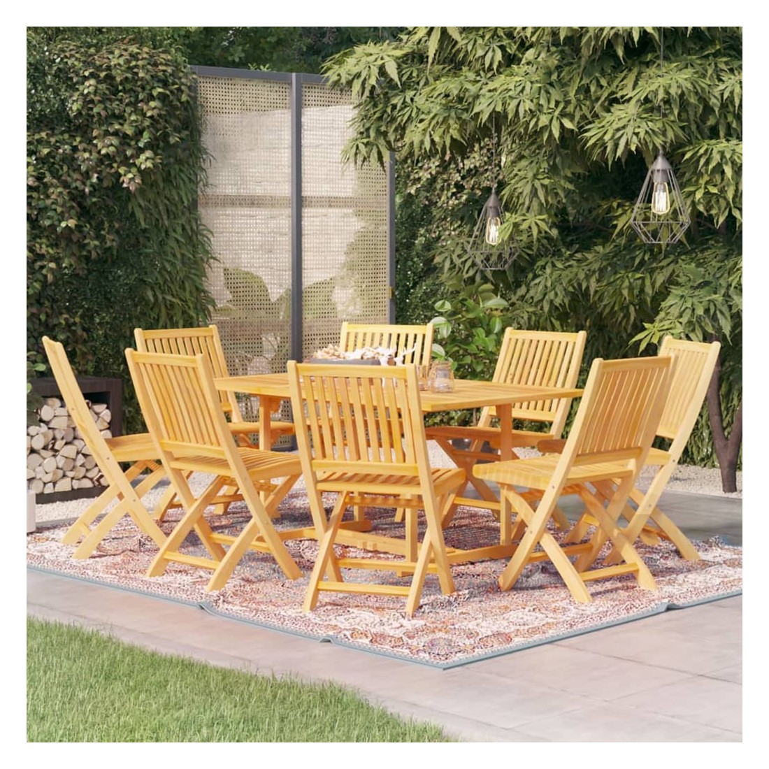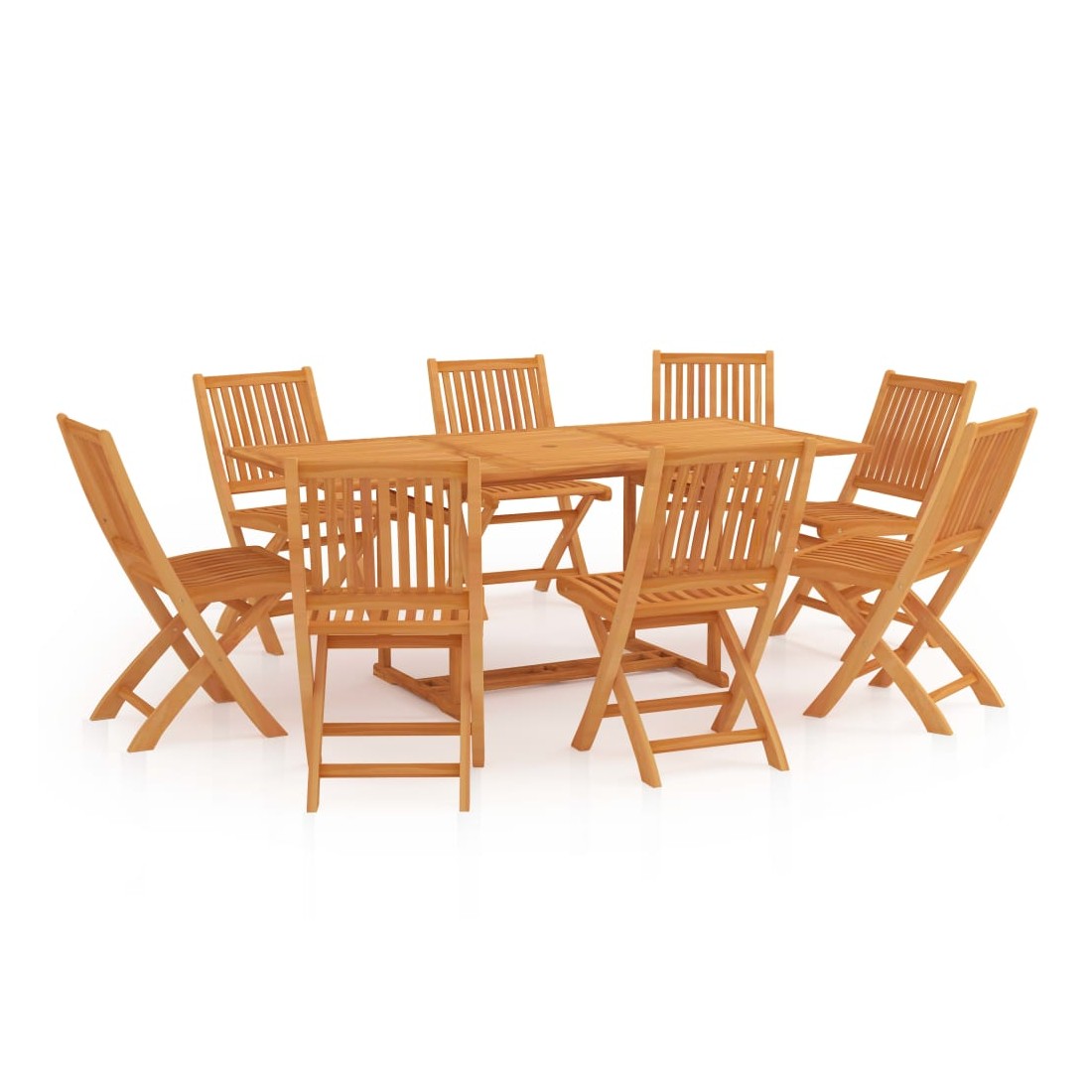 Cet ensemble de jardin en bois est parfait pour vos repas ou pour vous détendre dans le jardin ou sur le patio. Il est également idéal pour une utilisation à l'intérieur. Fabriquée en bois dur de teck extrêmement durable, cette pièce de meuble en teck a été chevronnée, séchée au four puis finement poncée pour lui donner un aspect très lisse. Le bois de teck est connu pour sa résistance exceptionnelle aux intempéries, ce qui le rend bien plus adapté aux meubles de jardin que tout autre type de bois. Le bois de teck est le choix idéal si vous souhaitez acheter une pièce de meubles de jardin durable. L’ensemble est appliqué avec une belle finition pour donner au bois une couleur chaude. La table comprend un trou pour un parasol afin de vous protéger du soleil. Les sièges et les dossiers incurvés des chaises peuvent bien s’adapter à votre corps. Avec un design pliable, les chaises peuvent être pliées pour économiser de l’espace lorsqu'elles ne sont pas utilisées. Elles sont également légères et faciles à déplacer. L’ensemble de meubles vous offre un confort et une grande commodité pour passer du temps avec votre famille et vos amis. De plus, cet ensemble est également facile à nettoyer avec un chiffon humide.