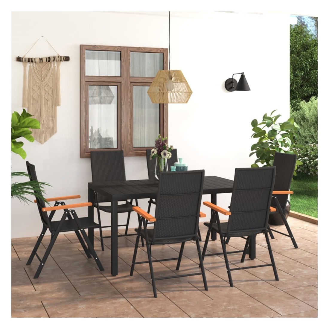vidaXLCet ensemble à manger de jardin est un excellent choix pour votre jardin, patio ou terrasse. La chaise de jardin est en résine tressée, ce qui la rend résistante aux intempéries et durable. Les accoudoirs en WPC marron ajoutent au look élégant des chaises. La table dispose d'un dessus de table en WPC avec une ligne simple, facile à nettoyer et adapté à une utilisation en plein air. Les cadres en aluminium assurent également la stabilité et la robustesse de cet ensemble. Grâce à sa construction légère, cet ensemble de meubles et facile à déplacer. Remarque : nous vous recommandons de couvrir le mobilier pendant la pluie, la neige ou le gel. Remarque : afin de prolonger la durée de vie des meubles d'extérieur, nous vous recommandons de les protéger avec une housse imperméable.
