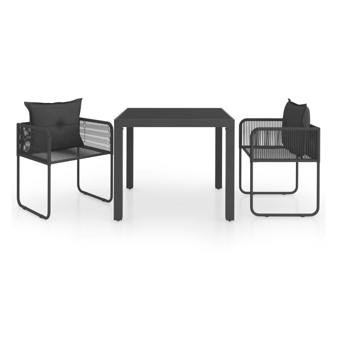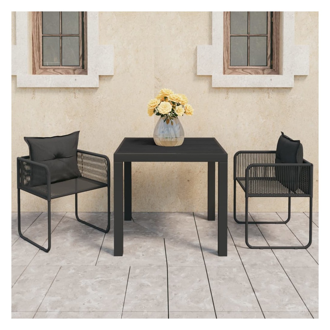 Cet ensemble à manger de jardin est un excellent choix pour votre jardin, patio ou terrasse. La chaise de jardin est en rotin PVC et cadre en acier enduit de poudre, ce qui la rend durable et stable. La table est dotée d’un cadre en aluminium et d’un dessus de table en WPC. Elle est facile à nettoyer et adaptée pour une utilisation à l'extérieur. Grâce à sa construction légère, cet ensemble de meubles d’extérieur est facile à déplacer. De plus, le coussin de dossier est recouvert de tissu solide et ajoute un confort d’assise supplémentaire à la chaise. Remarque : nous vous recommandons de couvrir le mobilier pendant la pluie, la neige ou le gel.