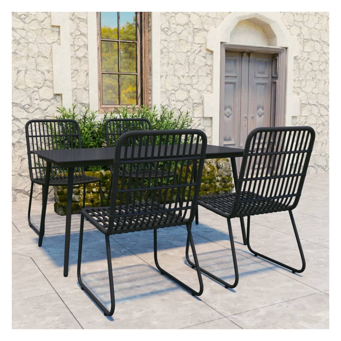 Cet ensemble de salle à manger d'extérieur est conçu pour être le point de mire de votre jardin ou patio ! Le cadre en acier rend la tables et les chaises solides et stables. Comme l’ensemble est également léger, tous les articles sont faciles à déplacer et adaptés pour une utilisation à l’extérieur. Le dessus de table en verre est facile à nettoyer avec un chiffon humide. L’élégance simple de cet ensemble de salle à manger rendra votre dîner quotidien spécial. Les chaises sont dotées de sièges et de dossiers en résine tressée, résistants aux intempéries.