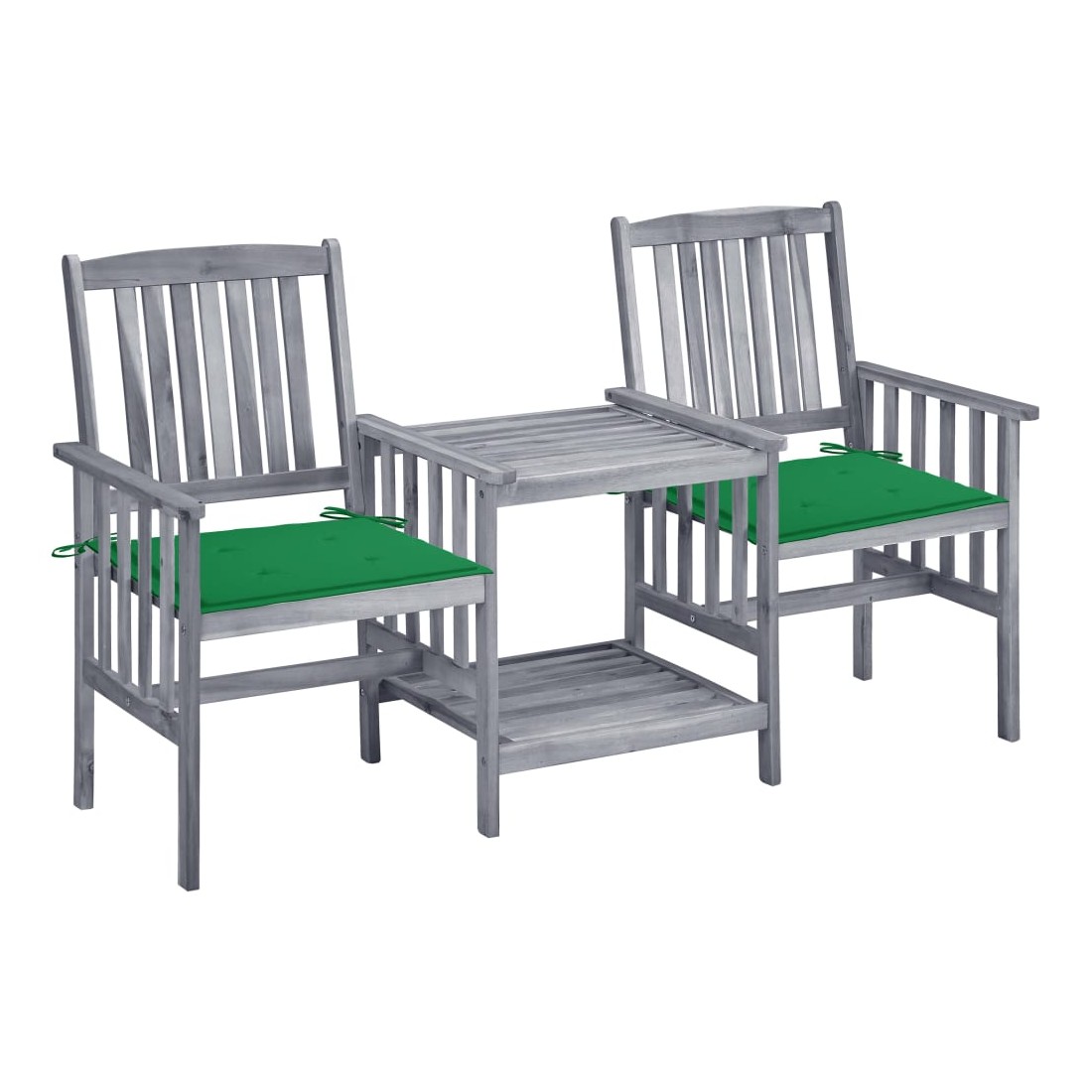Chaises de jardin avec table à thé et coussins Acacia solide