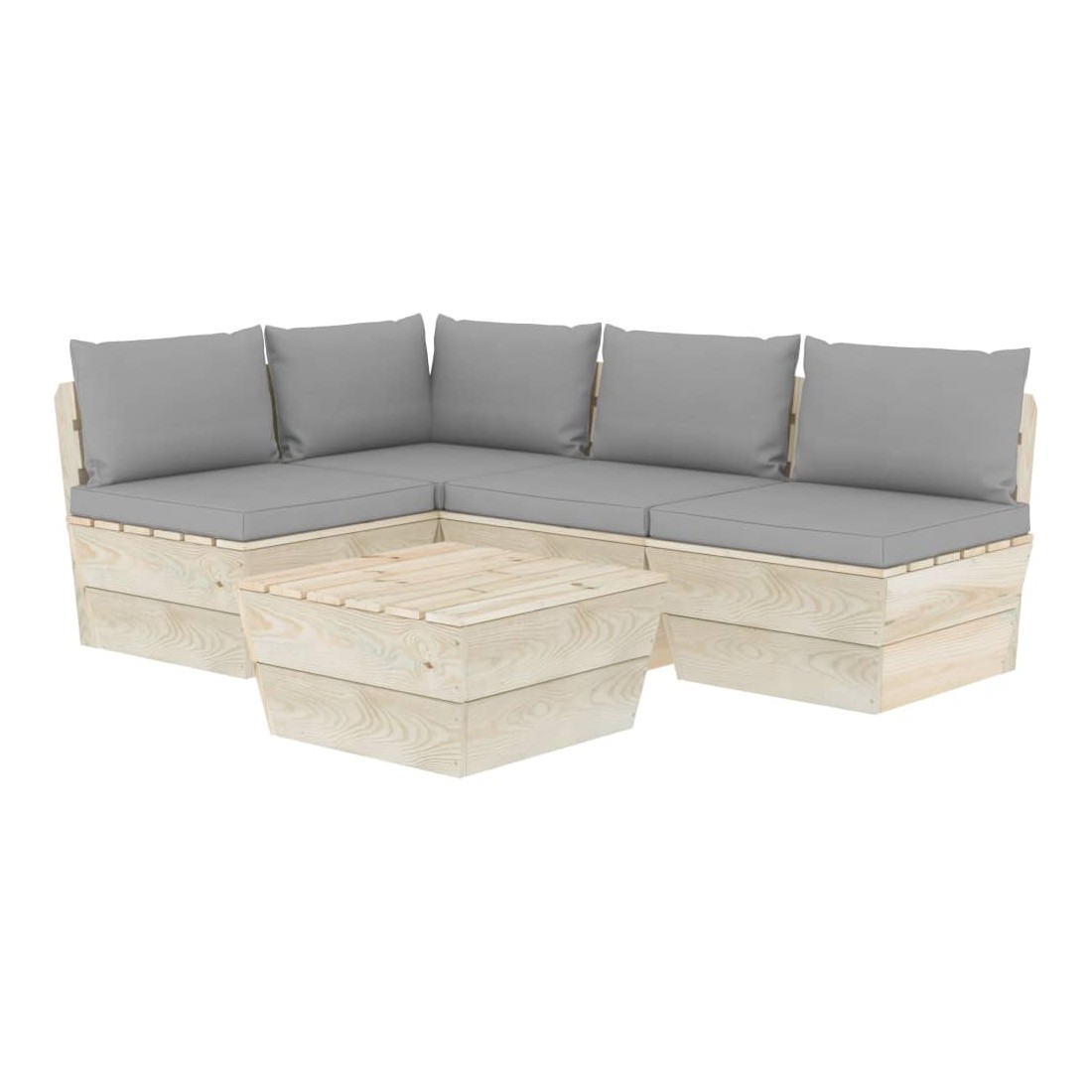Salon de jardin palette 5 pcs avec coussins bois d'épicéa