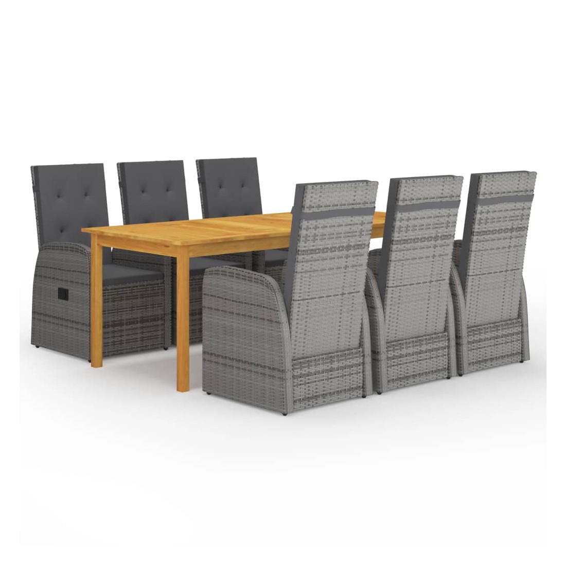 Créez une esthétique convaincante et uniforme dans votre espace extérieur avec cet ensemble de salle à manger de jardin ! La table de salle à manger est fabriquée en bois d’acacia massif avec une finition à l’huile, ce qui la rend stable, durable et facile à entretenir. Dotées d’un cadre en acier enduit de poudre recouvert de résine tressée résistante aux intempéries, ces chaises de salle à manger sont robustes et faciles à nettoyer. Le dossier s’inclinera en tirant sur le bouton situé sur le côté. Grâce à leur construction légère, les chaises sont faciles à déplacer. Elles sont également livrées avec des coussins hautement confortables et bien rembourrés pour un confort suprême. Les housses en polyester nécessitant peu d'entretien peuvent également être enlevées et lavées. Remarque importante : Nous vous recommandons de couvrir l'ensemble de salle à manger pendant la pluie, la neige et le gel pour une utilisation durable.