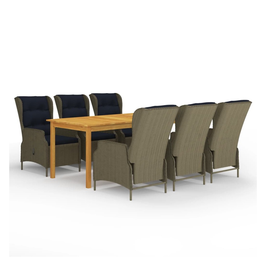 Créez une esthétique convaincante et uniforme dans votre espace extérieur avec cet ensemble de salle à manger de jardin ! La table de salle à manger est fabriquée en bois d’acacia massif avec une finition à l’huile, ce qui la rend stable, durable et facile à entretenir. Cette chaise d’extérieur, dotée d’un cadre en acier enduit de poudre recouvert de résine tressée ronde, est robuste et facile à nettoyer. Les coussins bien rembourrés ajoutent un confort supplémentaire lors de votre temps de détente. La housse de coussin est équipée d’une fermeture éclair, amovible et lavable. Grâce au mécanisme de levage à gaz, le dossier est également réglable pour s’adapter à vos positions. En appuyant sur le bouton sur le côté, le dossier peut s’incliner, pour une position couchée confortable. De plus, la chaise de jardin est facile à déplacer grâce à sa construction légère. Remarque importante : Nous vous recommandons de couvrir l'ensemble de salle à manger pendant la pluie, la neige et le gel pour une utilisation durable.