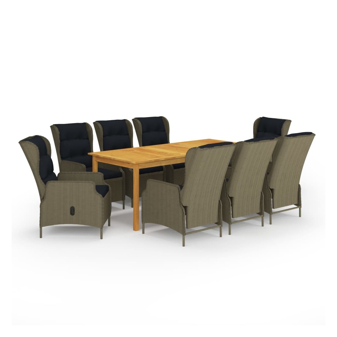 Créez une esthétique convaincante et uniforme dans votre espace extérieur avec cet ensemble de salle à manger de jardin ! La table de salle à manger est fabriquée en bois d’acacia massif avec une finition à l’huile, ce qui la rend stable, durable et facile à entretenir. Cette chaise d’extérieur, dotée d’un cadre en acier enduit de poudre recouvert de résine tressée ronde, est robuste et facile à nettoyer. Les coussins bien rembourrés ajoutent un confort supplémentaire lors de votre temps de détente. La housse de coussin est équipée d’une fermeture éclair, amovible et lavable. Grâce au mécanisme de levage à gaz, le dossier est également réglable pour s’adapter à vos positions. En appuyant sur le bouton sur le côté, le dossier peut s’incliner, pour une position couchée confortable. De pl