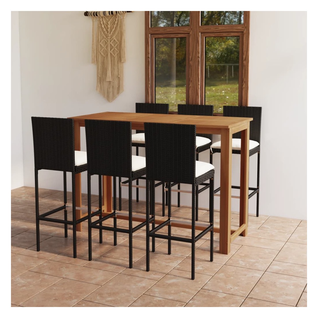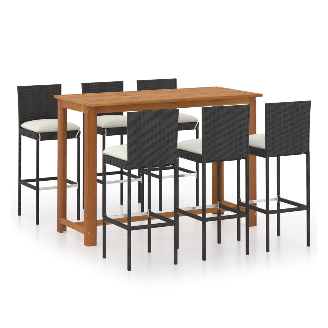 Cet ensemble de bar de jardin a un design élégant et sera le point de mire de votre jardin, patio ou terrasse. La table est fabriquée en bois d’acacia massif avec une finition à l’huile, ce qui la rend stable, durable et facile à entretenir. Doté d’un cadre en acier enduit de poudre recouvert de résine tressée résistante aux intempéries, ce tabouret de bar est robuste et facile à nettoyer. Les coussins de siège épais et amovibles sont très confortables. Les housses de coussin avec fermeture éclair peuvent être facilement enlevées et lavées. Remarque : nous vous recommandons de couvrir l'ensemble pendant la pluie, la neige et le gel.
