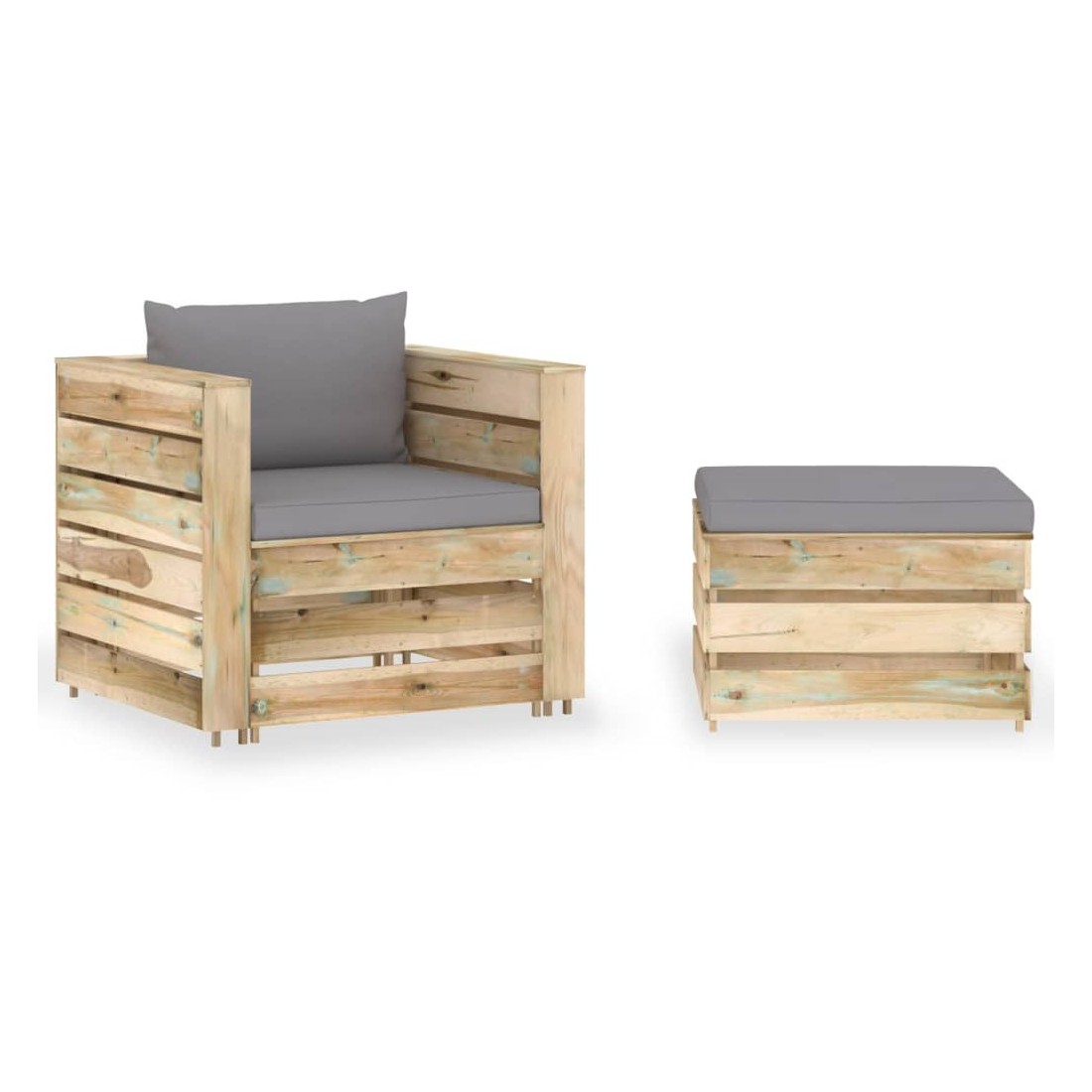 Salon de jardin 2 pcs avec coussins Bois imprégné de vert