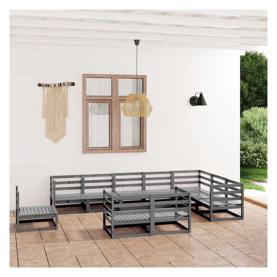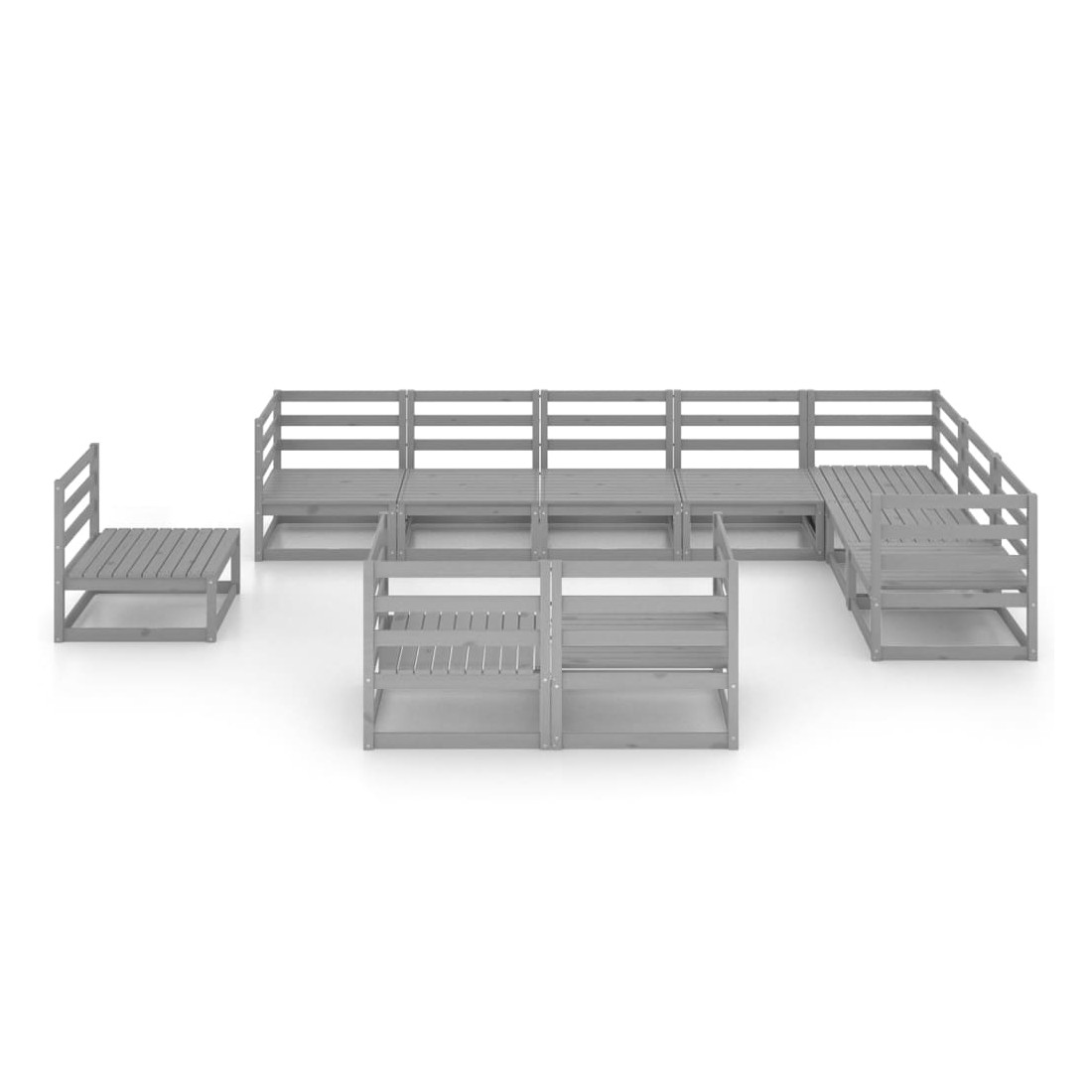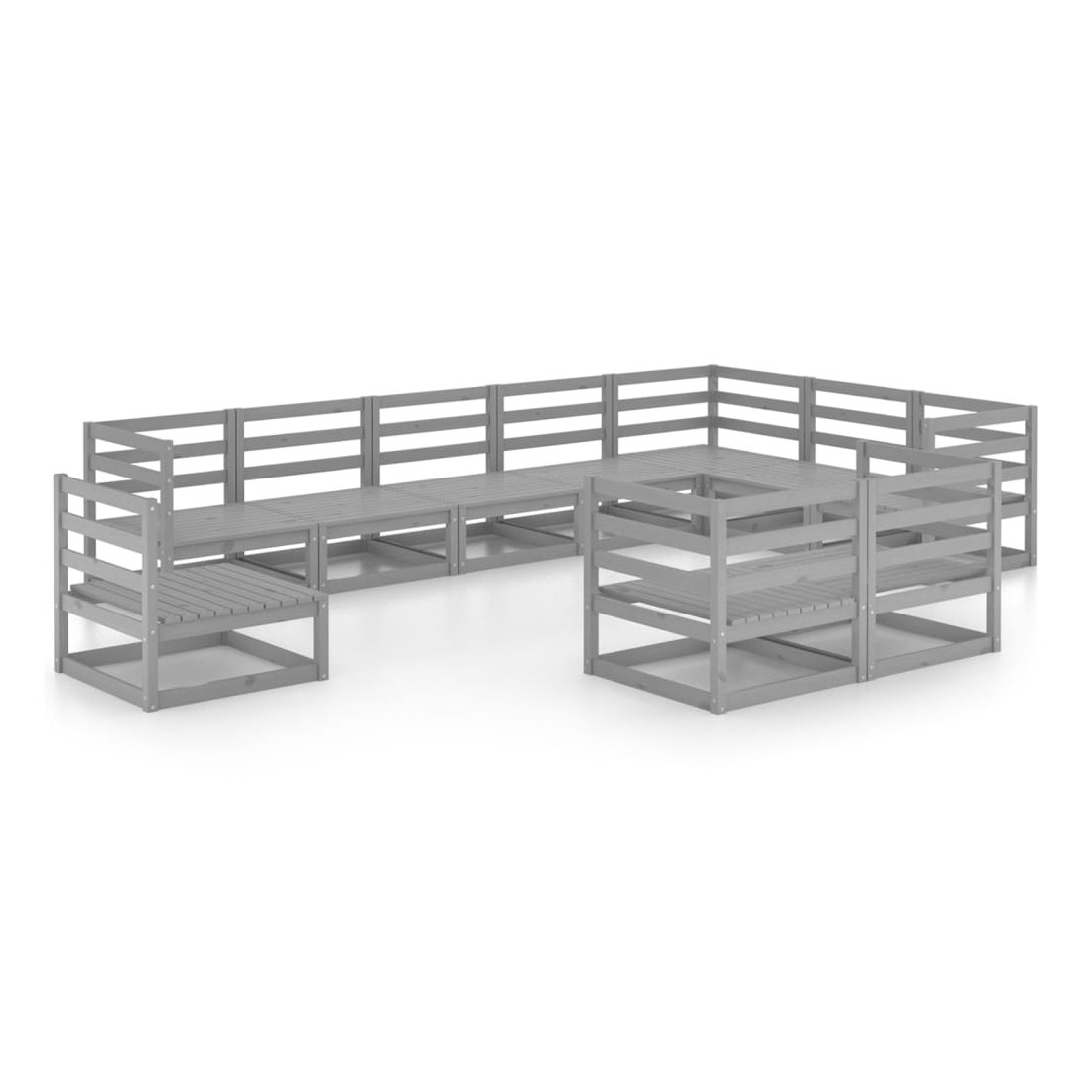 Salon de jardin 10 pcs gris bois de pin massif