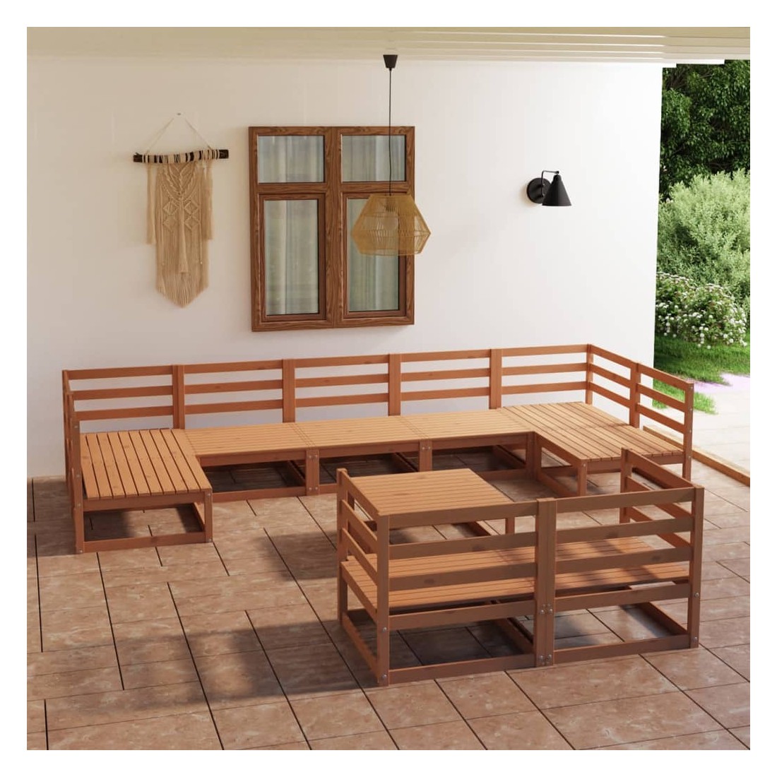Salon de jardin 10 pcs bois de pin massif