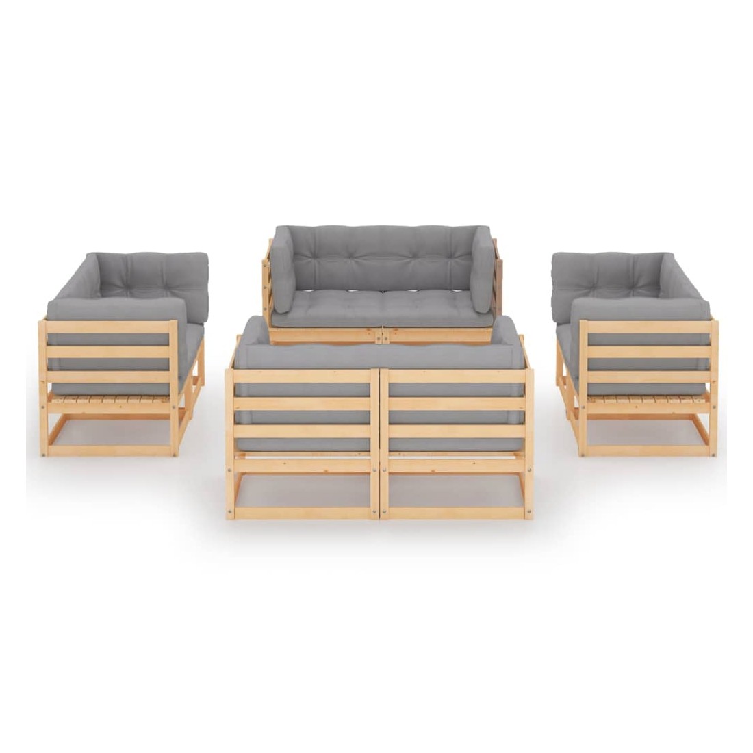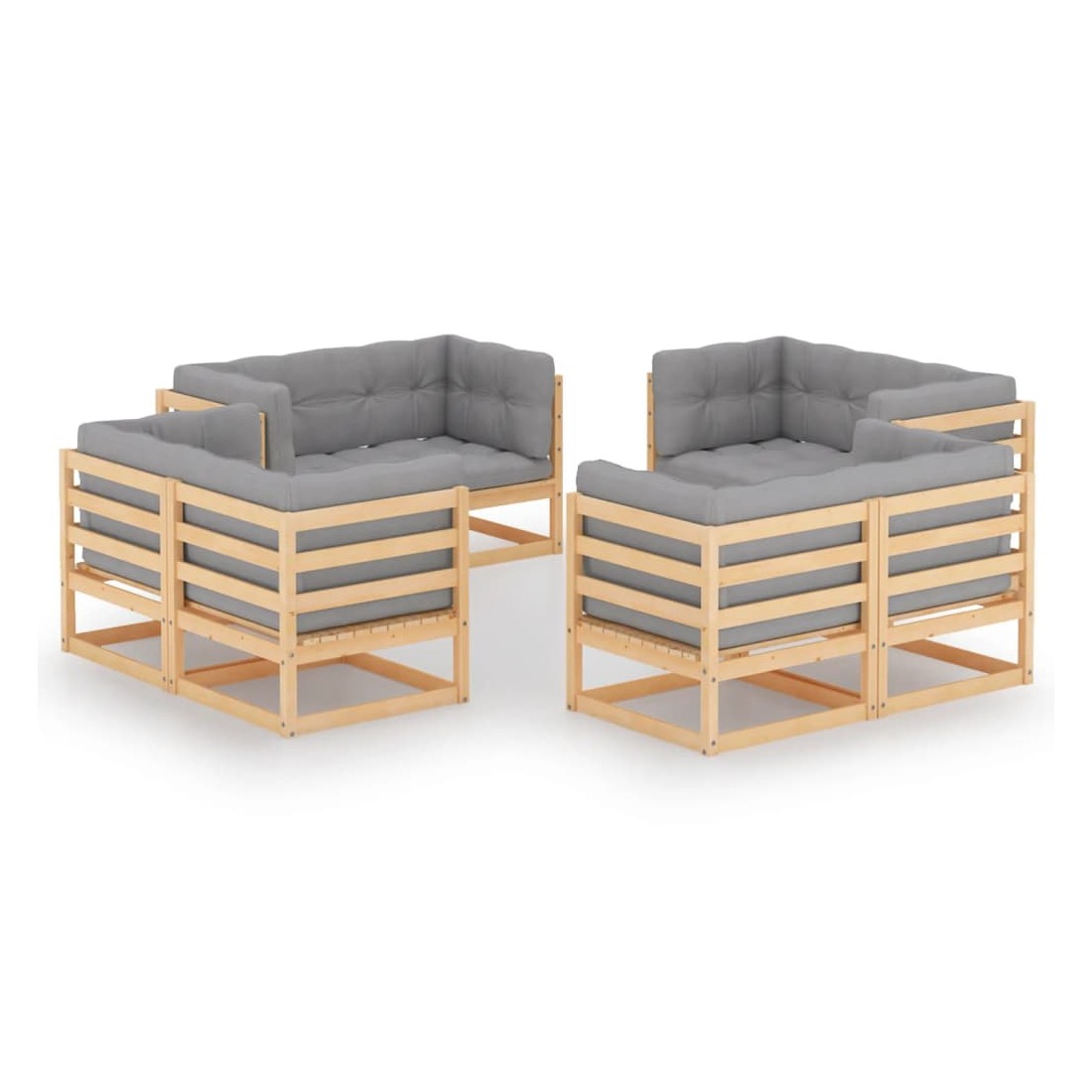 Ce salon de jardin est un excellent choix pour vous détendre et profiter du beau temps, faire une sieste ou discuter avec votre famille ou vos amis. L’ensemble de salon de jardin est fabriqué en bois de pin massif, ce qui le rend robuste et stable. Les coussins ajoutent un confort supplémentaire. Vous pouvez le combiner avec d’autres segments modulaires pour créer vos propres configurations de salon de jardin ! Remarque : afin de prolonger la durée de vie des meubles d'extérieur, nous vous recommandons de les protéger avec une housse imperméable.