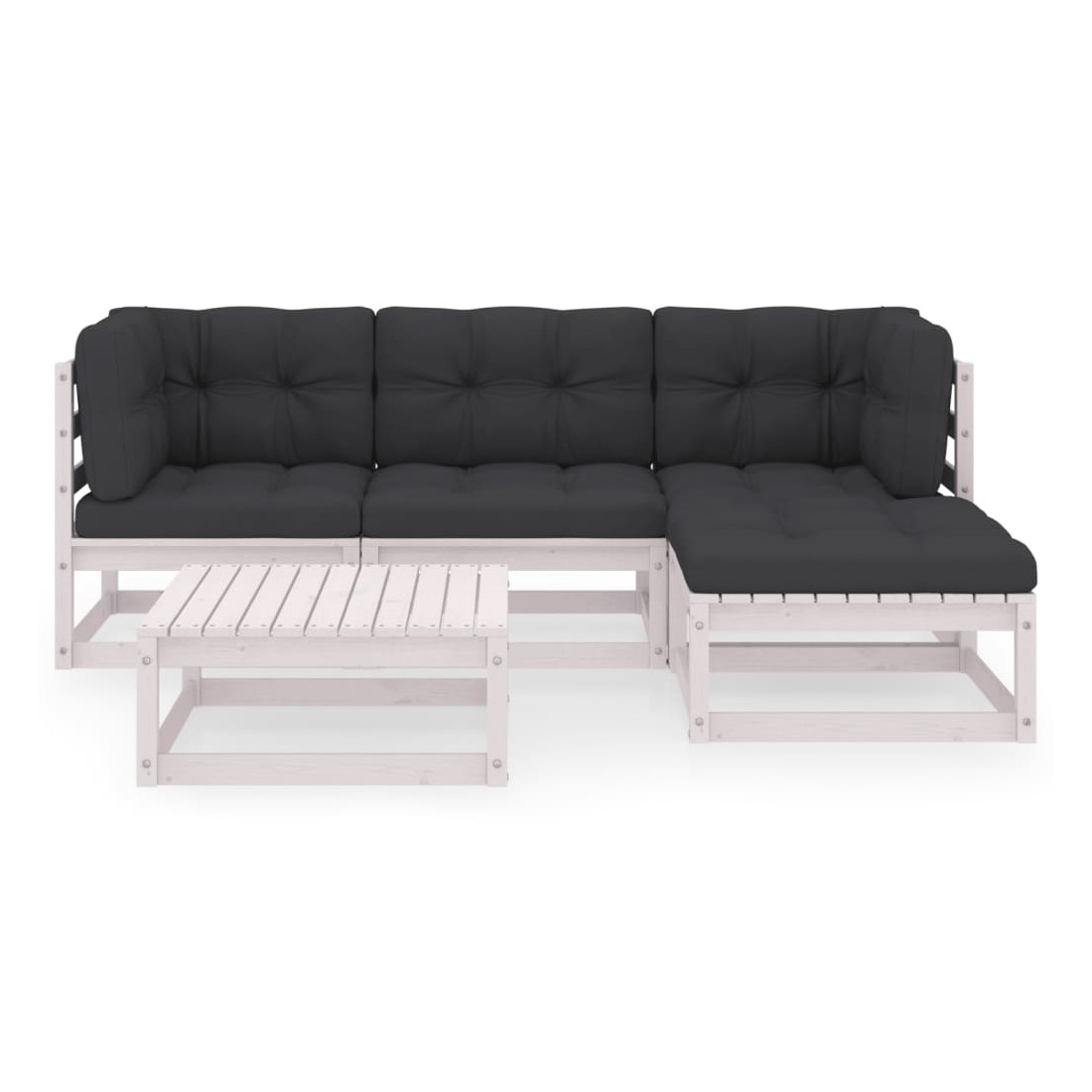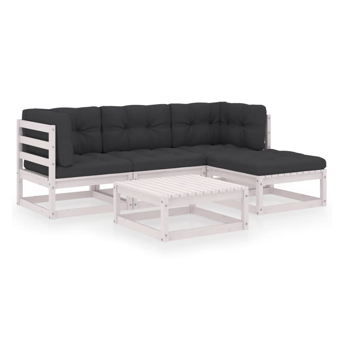 Ce salon de jardin est un excellent choix pour vous détendre et profiter du beau temps, faire une sieste ou discuter avec votre famille ou vos amis. L’ensemble de salon de jardin est fabriqué en bois de pin massif, ce qui le rend robuste et stable. Les coussins ajoutent un confort supplémentaire. Vous pouvez le combiner avec d’autres segments modulaires pour créer vos propres configurations de salon de jardin ! Remarque : afin de prolonger la durée de vie des meubles d'extérieur, nous vous recommandons de les protéger avec une housse imperméable.