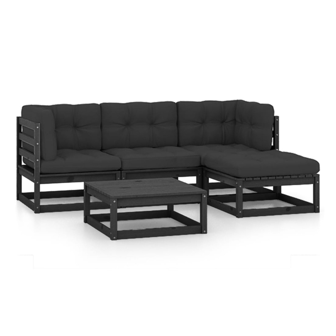 Ce salon de jardin est un excellent choix pour vous détendre et profiter du beau temps, faire une sieste ou discuter avec votre famille ou vos amis. L’ensemble de salon de jardin est fabriqué en bois de pin massif, ce qui le rend robuste et stable. Les coussins ajoutent un confort supplémentaire. Vous pouvez le combiner avec d’autres segments modulaires pour créer vos propres configurations de salon de jardin ! Remarque : afin de prolonger la durée de vie des meubles d'extérieur, nous vous recommandons de les protéger avec une housse imperméable.