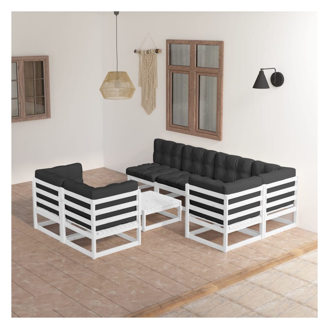 Salon de jardin 8 pcs avec coussins Bois de pin massif