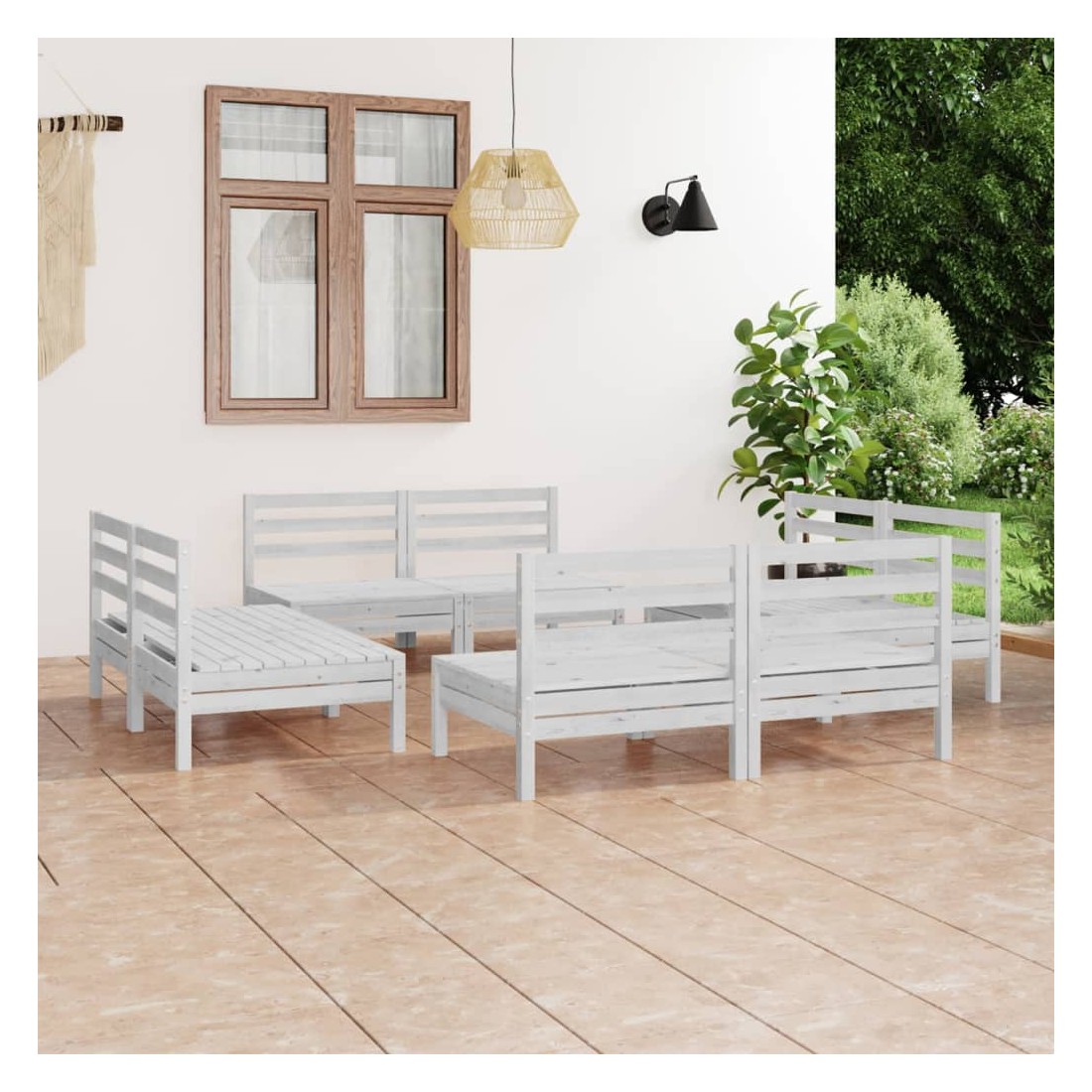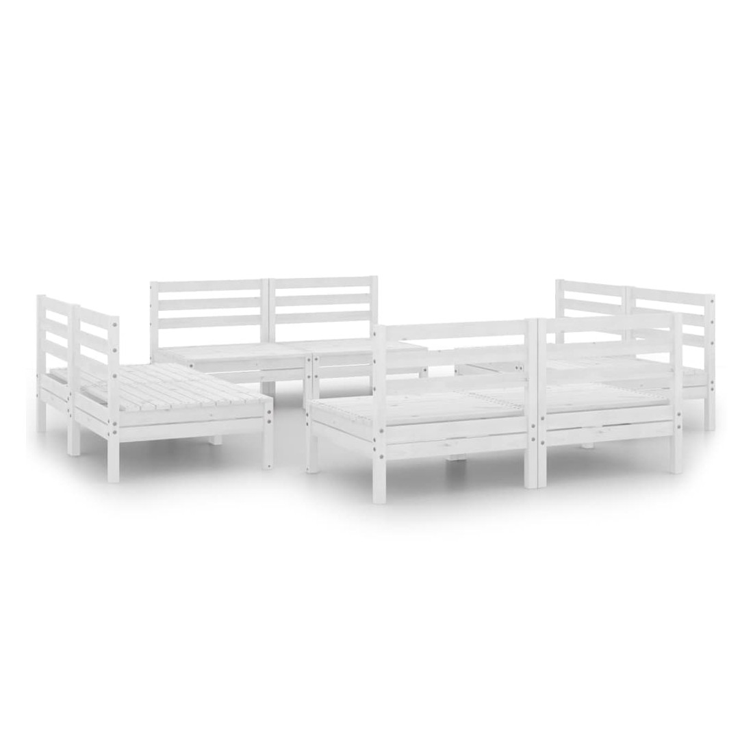 Salon de jardin 8 pcs Blanc Bois de pin massif