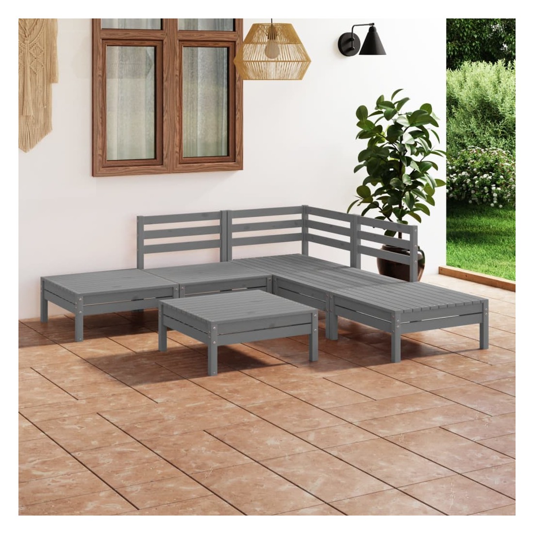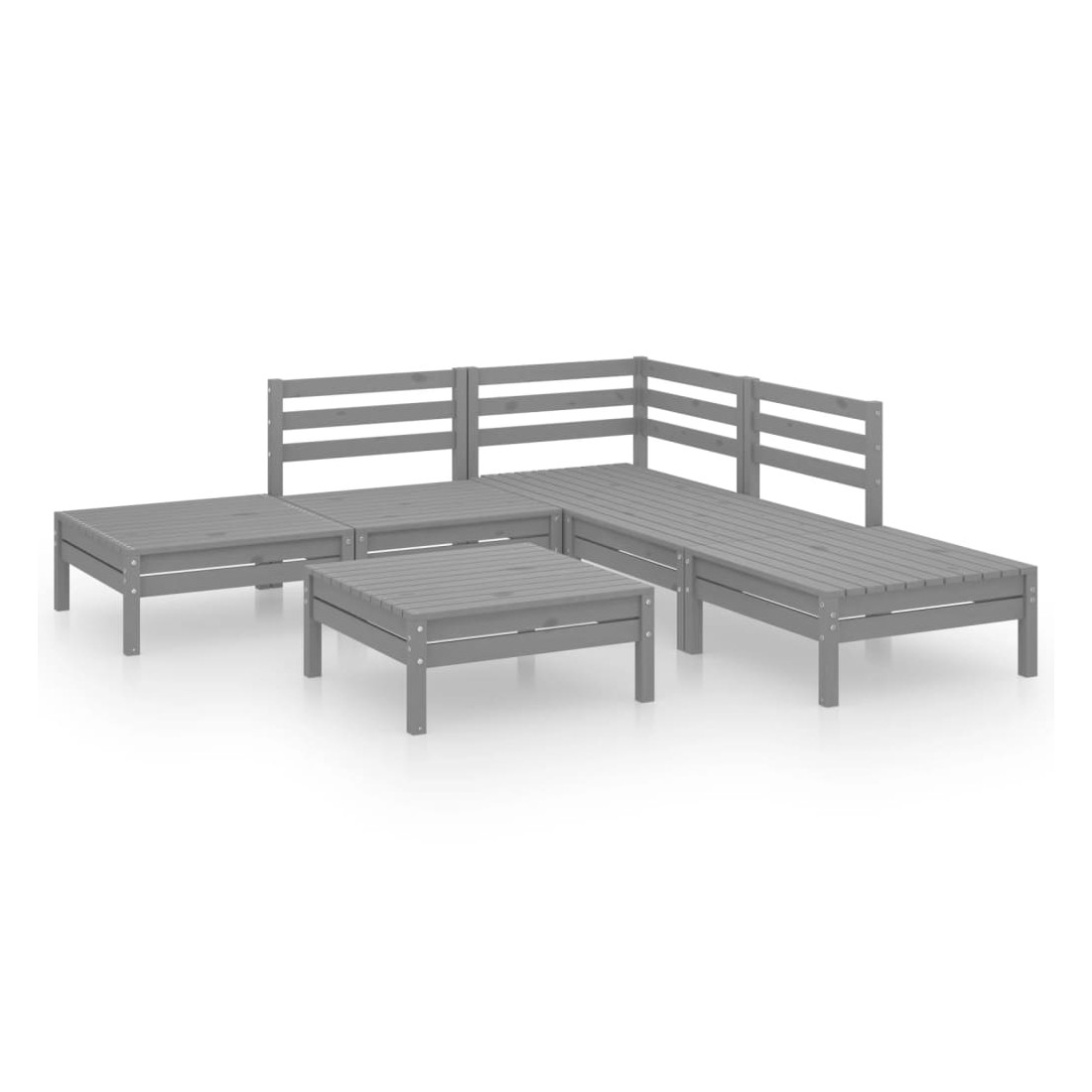 Salon de jardin 6 pcs Bois de pin massif Gris