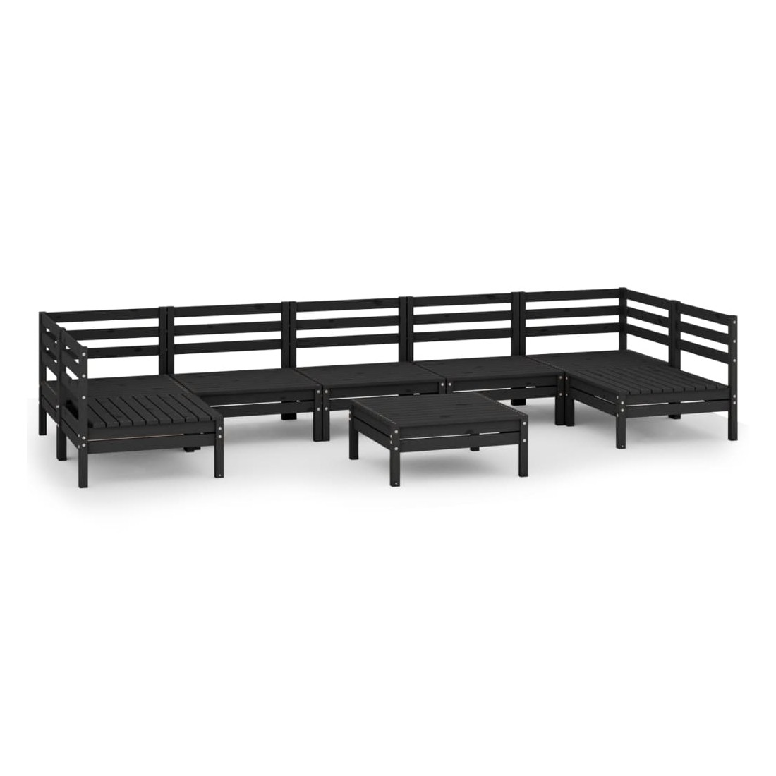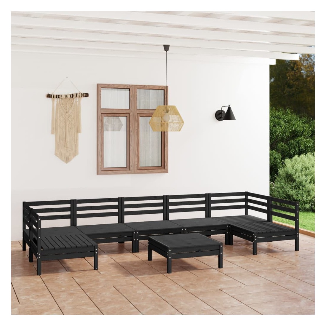 Salon de jardin 8 pcs Noir Bois de pin massif