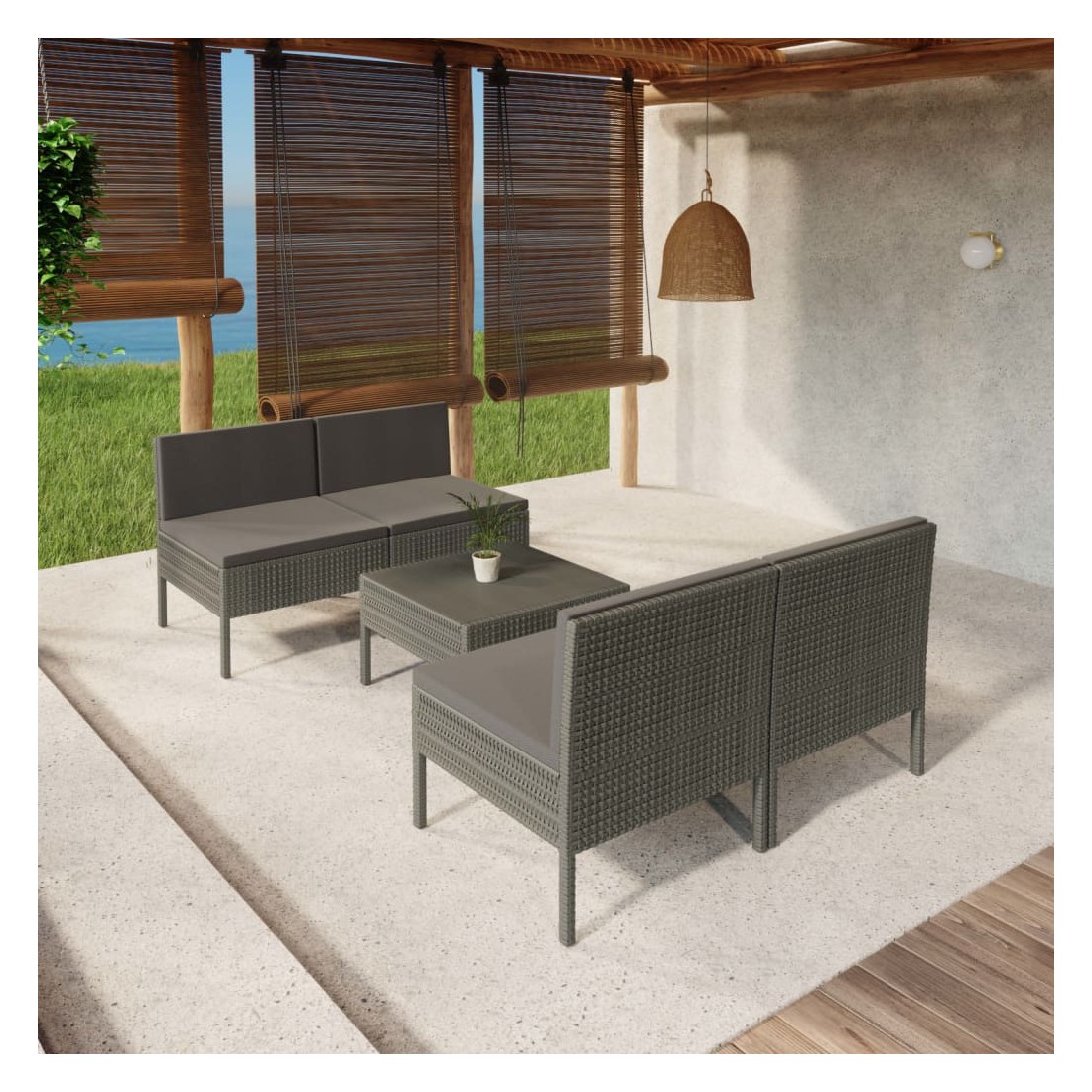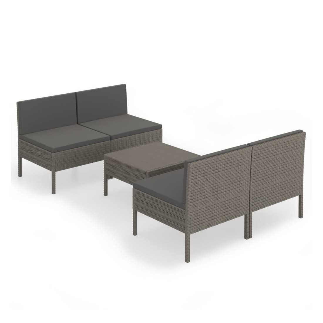 Salon de jardin 5 pcs avec coussins résine tressée gris