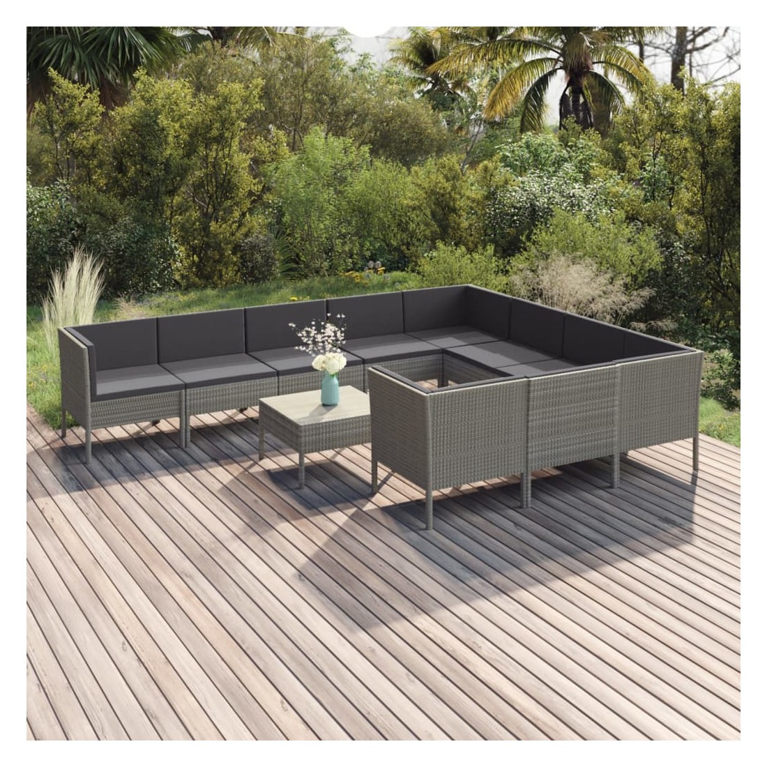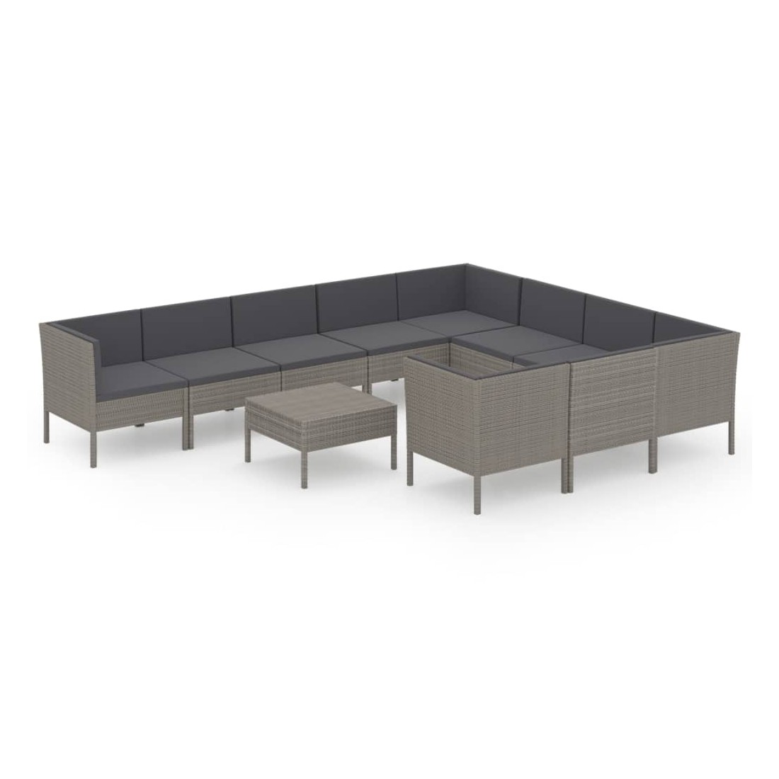 Salon de jardin 11 pcs avec coussins Résine tressée Gris
