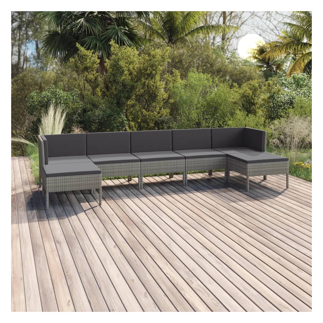 Créez un espace de détente attrayant et relaxant dont vous avez toujours rêvé avec ce salon de jardin. Vous pouvez profiter d’un après-midi ensoleillé ou d'une soirée d'été relaxante avec votre famille et vos amis grâce à cet ensemble de meubles de jardin ! Avec de la résine tressée résistante aux intempéries, l'ensemble de meubles d'extérieur est facile à nettoyer et à entretenir. Le cadre en acier enduit de poudre l'ensemble de salon de patio stable et solide. Équipé de coussins épais et moelleux, ce salon de jardin offrira un confort d’assise ultime. Les housses en polyester, faciles à nettoyer, peuvent être retirées et lavées. De plus, grâce à leur conception légère et modulaire, vous pouvez déplacer cet ensemble dans votre maison avec une grande facilité. Remarque : afin de prolonger la durée de vie des meubles d'extérieur, nous vous recommandons de les protéger avec une housse imperméable.