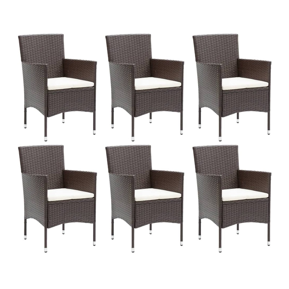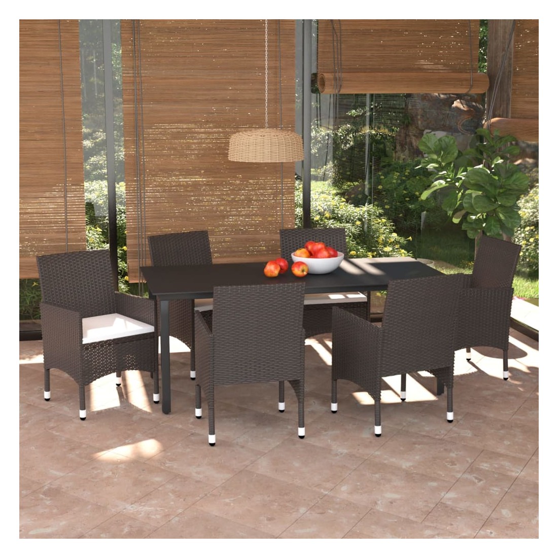 Ensemble à manger de jardin et coussins 7 pcs marron poly rotin