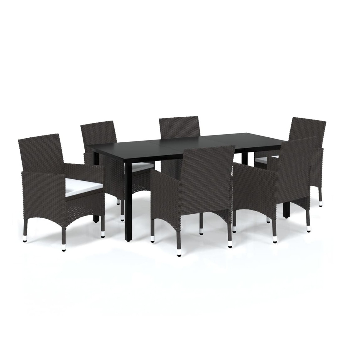 vidaXLCet ensemble de salle à manger de jardin est une combinaison parfaite de style et de fonctionnalité et est destiné à être le point de mire de votre jardin, balcon ou patio. Avec un cadre en acier robuste enveloppé de résine tressée résistante aux intempéries, les chaises de jardin sont à l'épreuve de la rouille et de la moisissure, offrant des années de détente de qualité. La table d'extérieur présente un dessus de table en verre aux lignes simples, facile à nettoyer et adapté à une utilisation en extérieur. Le cadre en aluminium assure également la stabilité et la robustesse. De plus, les coussins bien rembourrés offrent un confort ultime pendant votre temps assis. Cet ensemble de salle à manger de patio est facile à déplacer grâce à sa construction légère. Remarque : afin de prolonger la durée de vie des meubles d'extérieur, nous vous recommandons de les protéger avec une housse imperméable.