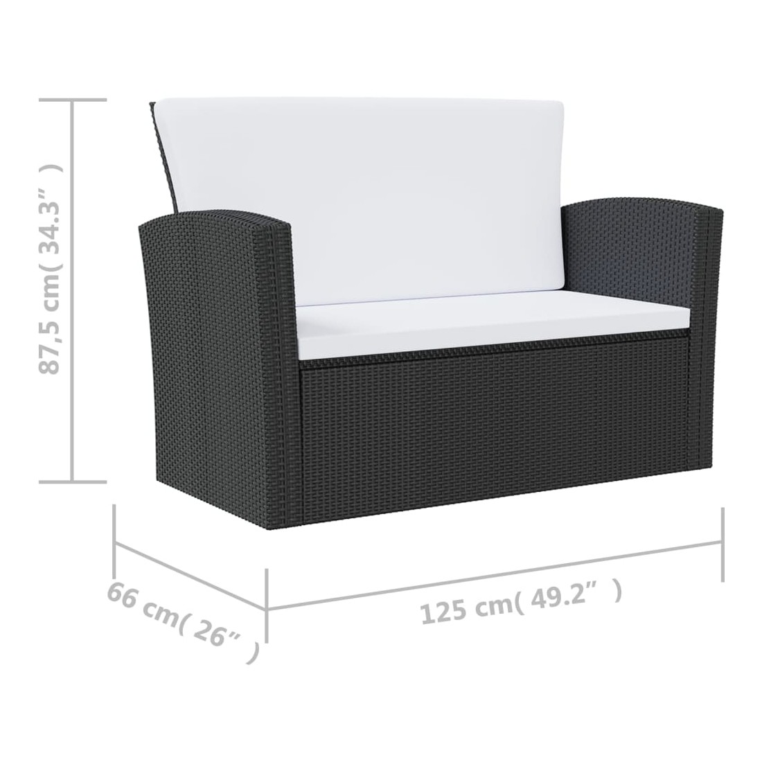• Dimensions du canapé à 2 places : 125 x 66 x 87,5 cm (l x P x H)