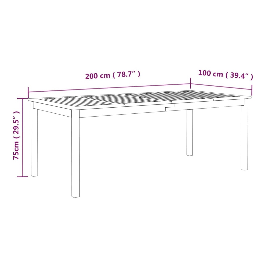 • Dimensions : 200 x 100 x 75 cm (L x l x H)