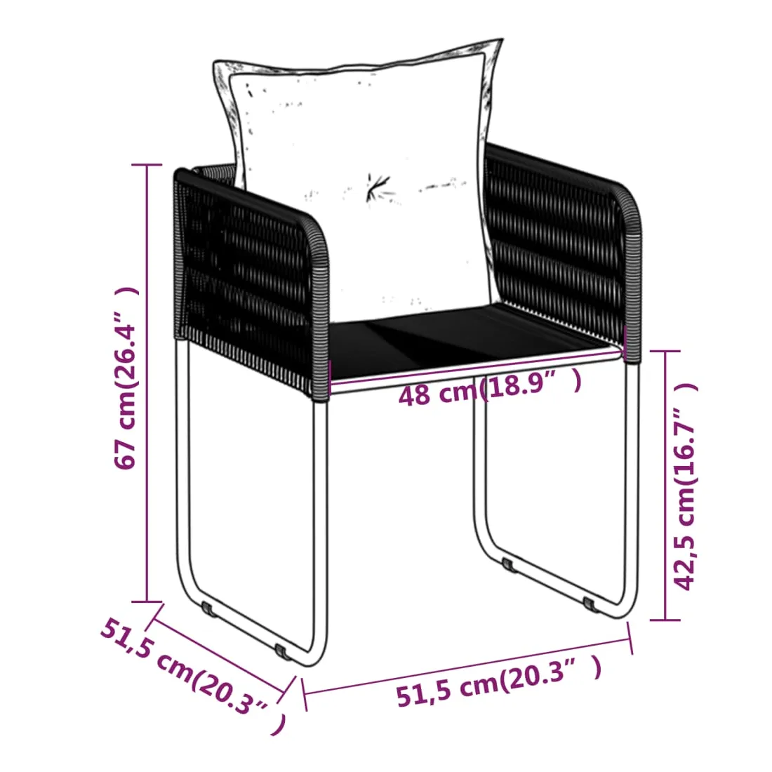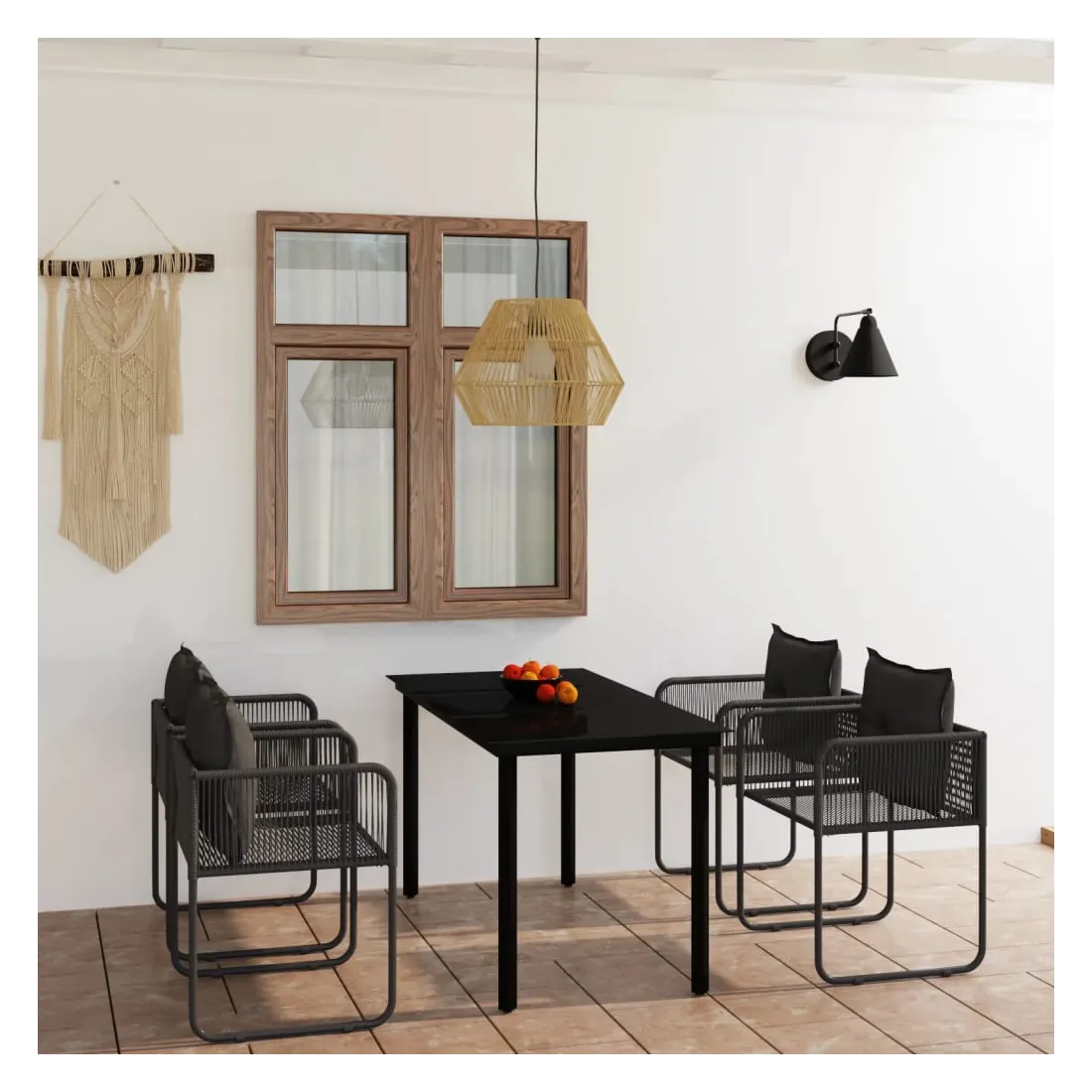 Créez une esthétique convaincante et uniforme dans votre espace extérieur avec cet ensemble de salle à manger de jardin ! Cet ensemble de repas de jardin est fait de cadre en acier enduit de poudre, ce qui le rend robuste et stable pour une utilisation quotidienne à l’extérieur. Le dessus de table en verre lisse est facile à nettoyer avec un chiffon humide et est parfait pour placer des repas, des boissons et d'autres objets décoratifs. Les chaises de patio sont en résine tressée, ce qui les rend légères et résistantes à l’eau. De plus, les coussins de dossier offrent un confort ultime pour vos moments de détente. Remarque : nous vous recommandons de couvrir le mobilier pendant la pluie, la neige ou le gel. Remarque : afin de prolonger la durée de vie des meubles d'extérieur, nous vous