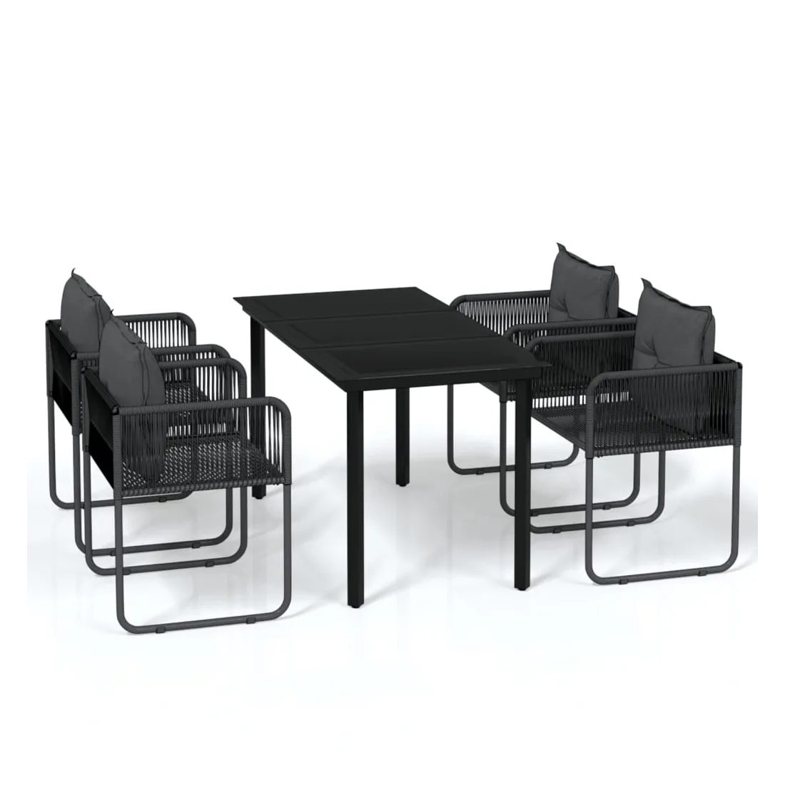 Créez une esthétique convaincante et uniforme dans votre espace extérieur avec cet ensemble de salle à manger de jardin ! Cet ensemble de repas de jardin est fait de cadre en acier enduit de poudre, ce qui le rend robuste et stable pour une utilisation quotidienne à l’extérieur. Le dessus de table en verre lisse est facile à nettoyer avec un chiffon humide et est parfait pour placer des repas, des boissons et d'autres objets décoratifs. Les chaises de patio sont en résine tressée, ce qui les rend légères et résistantes à l’eau. De plus, les coussins de dossier offrent un confort ultime pour vos moments de détente. Remarque : nous vous recommandons de couvrir le mobilier pendant la pluie, la neige ou le gel. Remarque : afin de prolonger la durée de vie des meubles d'extérieur, nous vous recommandons de les protéger avec une housse imperméable.