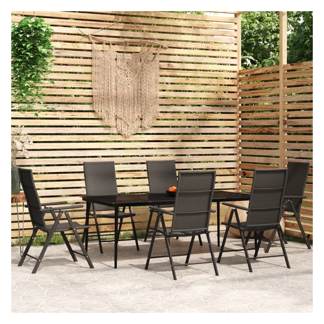 Créez une esthétique convaincante et uniforme dans votre espace extérieur avec cet ensemble de salle à manger de jardin ! Cette table de salle à manger de jardin est faite de cadre en acier enduit de poudre, ce qui la rend robuste et stable pour une utilisation quotidienne à l’extérieur. Le dessus de table en verre lisse est facile à nettoyer avec un chiffon humide et est parfait pour placer des repas, des boissons et d'autres objets décoratifs. Les chaises de patio sont en résine tressée, ce qui les rend légères et résistantes à l’eau. De plus, les dossiers des chaises sont inclinables sur 7 niveaux, ce qui vous permet de toujours trouver la position la plus confortable. Les chaises peuvent être pliées pour gagner de la place lorsqu'elles ne sont pas utilisées. Remarque : nous vous re