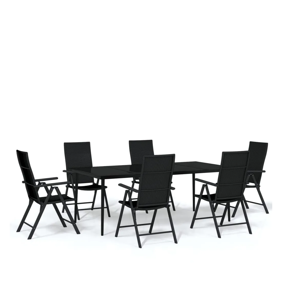 Créez une esthétique convaincante et uniforme dans votre espace extérieur avec cet ensemble de salle à manger de jardin ! Cette table de salle à manger de jardin est faite de cadre en acier enduit de poudre, ce qui la rend robuste et stable pour une utilisation quotidienne à l’extérieur. Le dessus de table en verre lisse est facile à nettoyer avec un chiffon humide et est parfait pour placer des repas, des boissons et d'autres objets décoratifs. Les chaises de patio sont en résine tressée, ce qui les rend légères et résistantes à l’eau. De plus, les dossiers des chaises sont inclinables sur 7 niveaux, ce qui vous permet de toujours trouver la position la plus confortable. Les chaises peuvent être pliées pour gagner de la place lorsqu'elles ne sont pas utilisées. Remarque : nous vous recommandons de couvrir le mobilier pendant la pluie, la neige ou le gel. Remarque : afin de prolonger la durée de vie des meubles d'extérieur, nous vous recommandons de les protéger avec une housse imperméable.