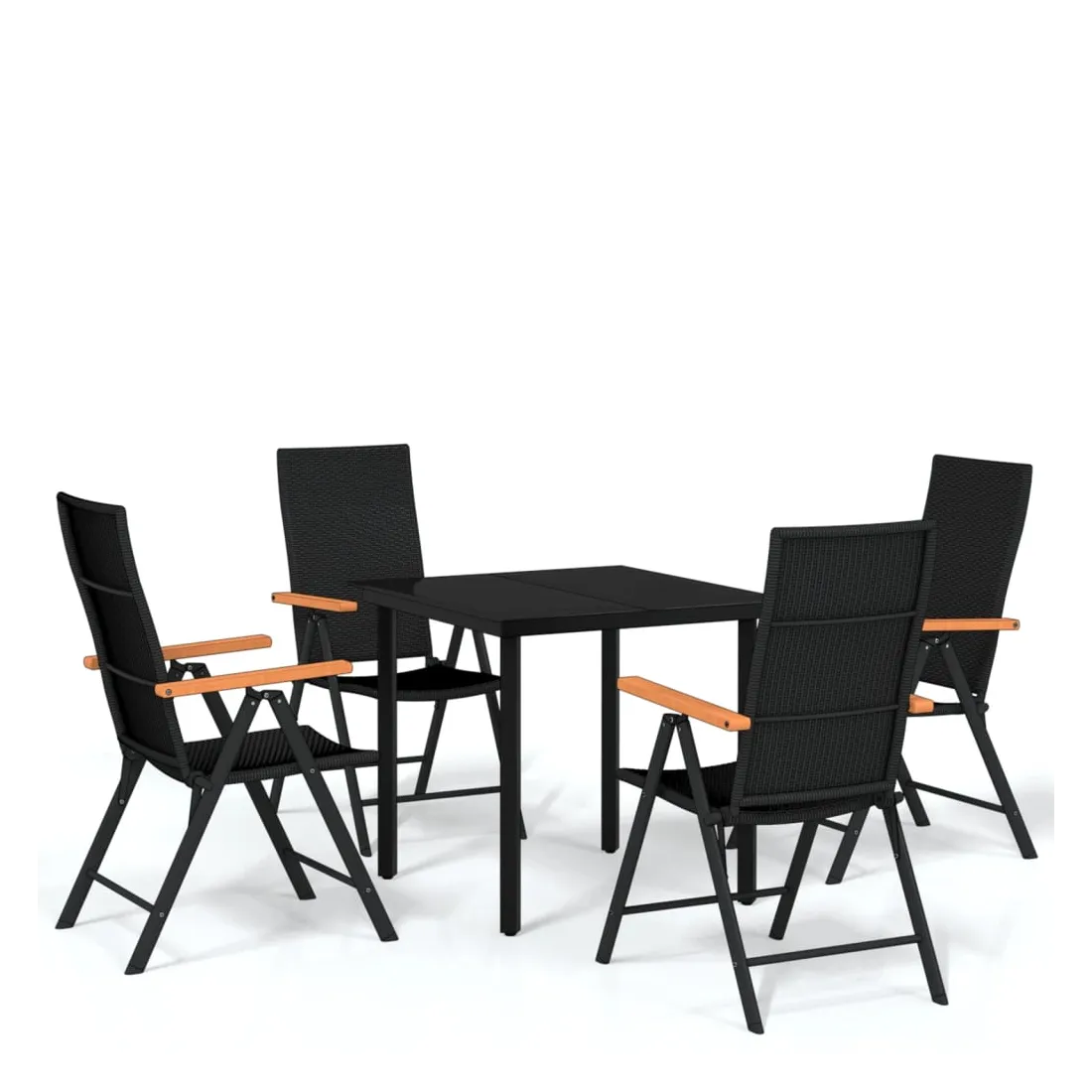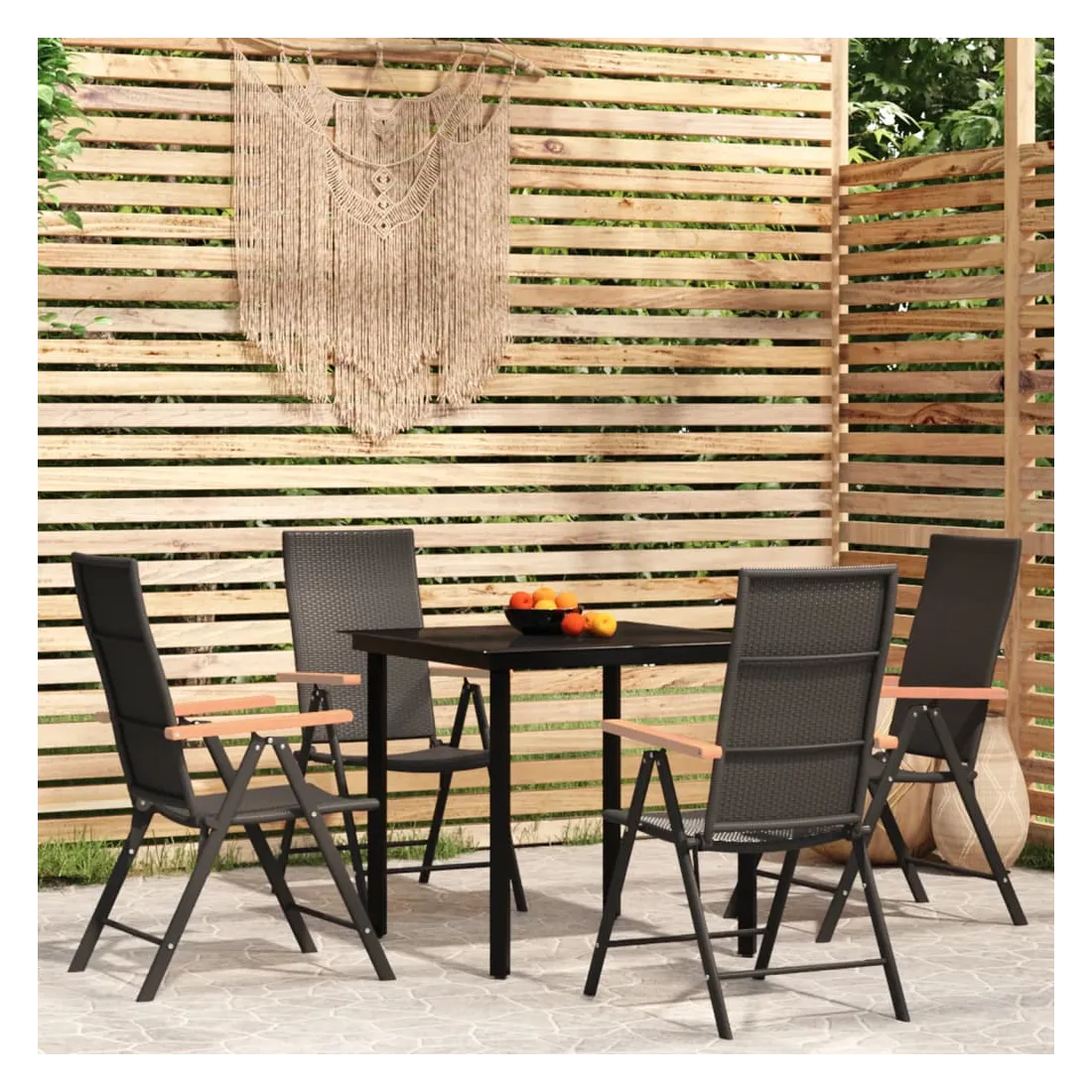vidaXLCréez une esthétique convaincante et uniforme dans votre espace extérieur avec cet ensemble de salle à manger de jardin ! Cette table de salle à manger de jardin est faite de cadre en acier enduit de poudre, ce qui la rend robuste et stable pour une utilisation quotidienne à l’extérieur. Le dessus de table en verre lisse est facile à nettoyer avec un chiffon humide et est parfait pour placer des repas, des boissons et d'autres objets décoratifs. Les chaises de patio sont en résine tressée, ce qui les rend légères et résistantes à l’eau. De plus, les dossiers des chaises sont inclinables sur 7 niveaux, ce qui vous permet de toujours trouver la position la plus confortable. Les chaises peuvent être pliées pour gagner de la place lorsqu'elles ne sont pas utilisées. Remarque : nous vous recommandons de couvrir le mobilier pendant la pluie, la neige ou le gel. Remarque : afin de prolonger la durée de vie des meubles d'extérieur, nous vous recommandons de les protéger avec une housse imperméable.