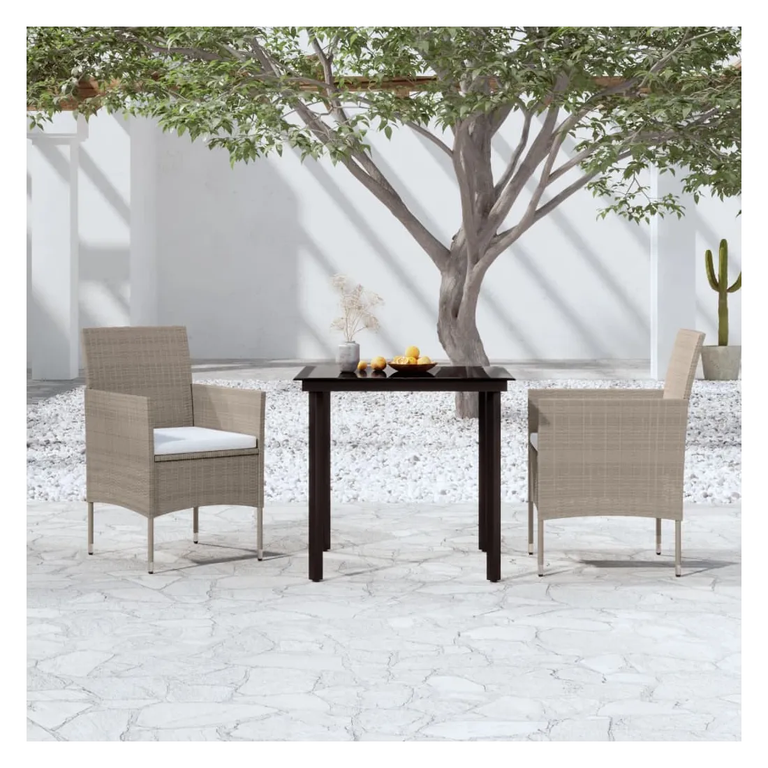 Cet ensemble de salle à manger de jardin est un excellent choix pour manger ou vous détendre dans l'espace extérieur ! Les cadres en acier enduit de poudre rendent la table et les chaises robustes et stables pour une utilisation quotidienne à l'extérieur. Grâce à la résine tressée résistante à l’eau, les chaises sont faciles à nettoyer et conviennent à un usage quotidien. Le dessus de table en verre lisse est facile à nettoyer avec un chiffon humide et parfait pour placer les repas, les boissons et autres articles décoratifs. Remarque : afin de prolonger la durée de vie des meubles d'extérieur, nous vous recommandons de les protéger avec une housse imperméable.