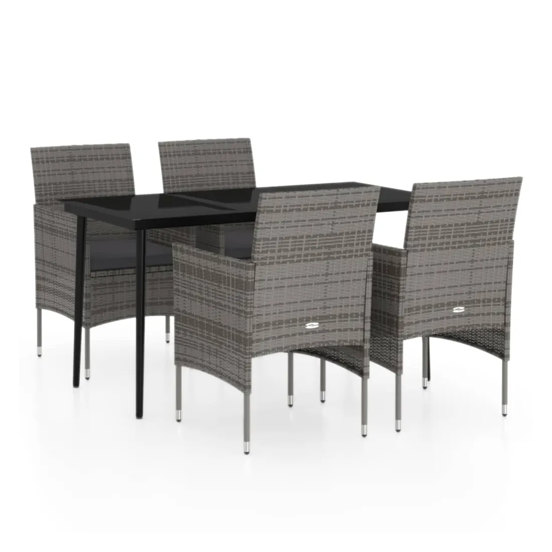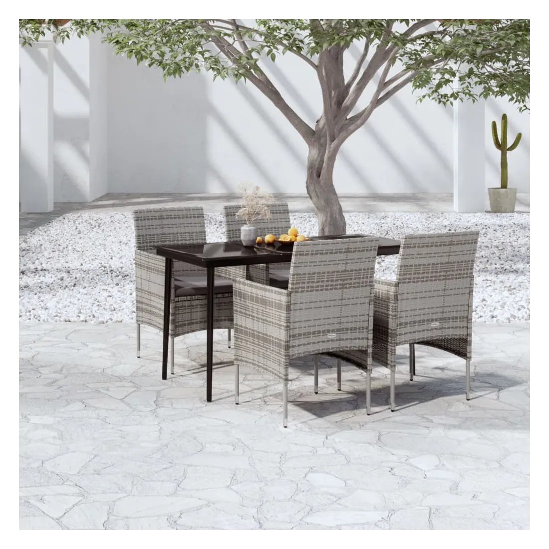 Ensemble à manger de jardin et coussins 5pcs Gris/noir