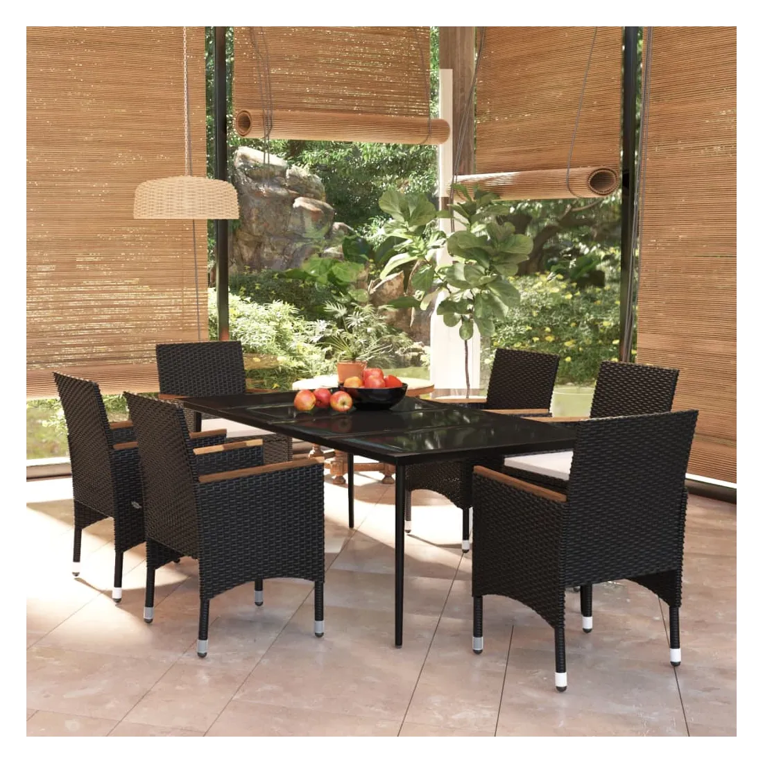 • Matériau : résine tressée, acier enduit de poudre, verre, bois d'acacia massif