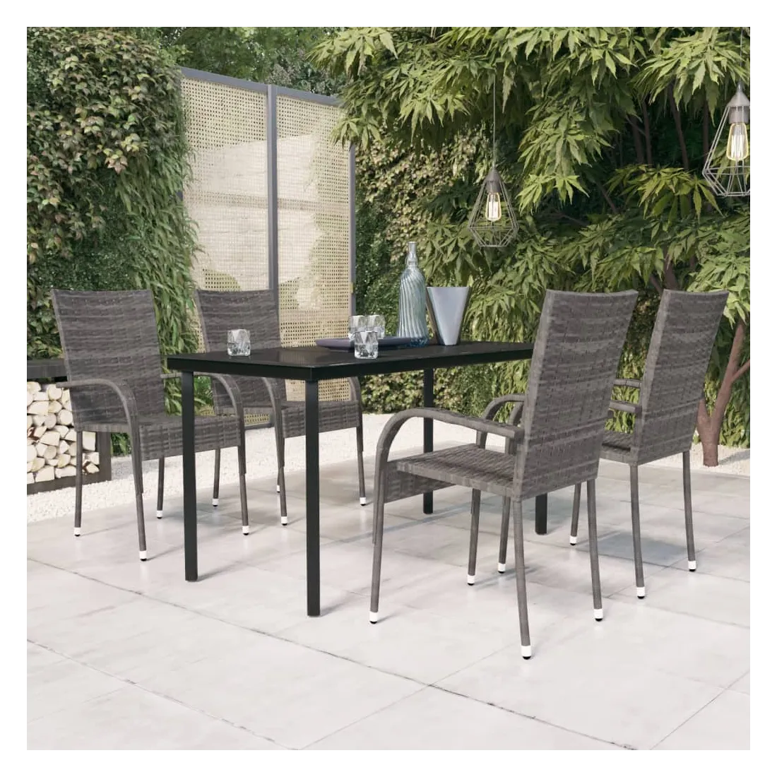 Ensemble à manger de jardin 5 pcs Gris et noir
