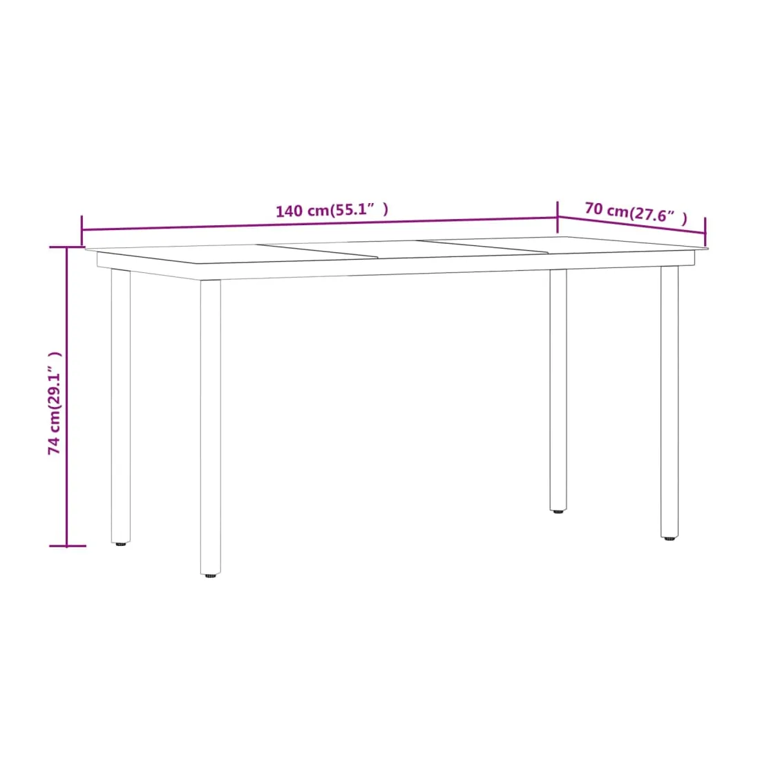 • Dimensions de la table : 140 x 70 x 74 cm (L x l x H)