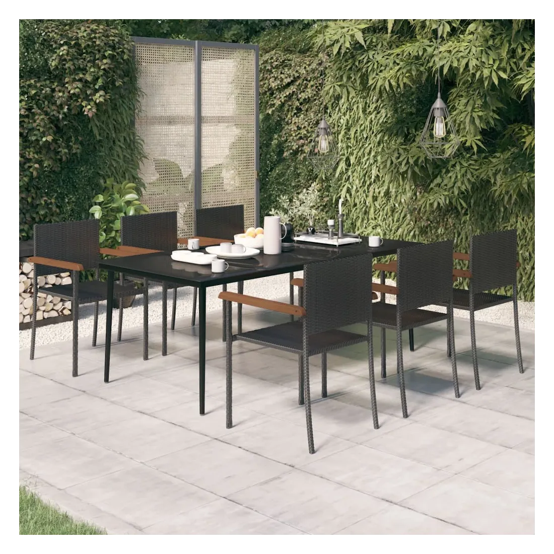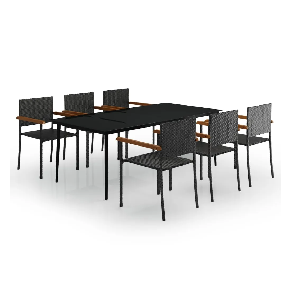 Cet élégant ensemble de salle à manger de jardin est destiné à être le point de mire de votre jardin ou patio ! C'est un excellent choix pour les repas en plein air ou pour vous détendre dans l'espace extérieur ! Les cadres en acier enduit de poudre rendent la table et les chaises robustes et stables pour une utilisation quotidienne en extérieur. Grâce à la résine tressée résistante à l’eau, les chaises sont faciles à nettoyer et résistantes à l'usure. Le dessus de table en verre lisse est facile à nettoyer avec un chiffon humide et parfait pour placer les repas, les boissons et autres articles décoratifs. Remarque : afin de prolonger la durée de vie des meubles d'extérieur, nous vous recommandons de les protéger avec une housse imperméable.