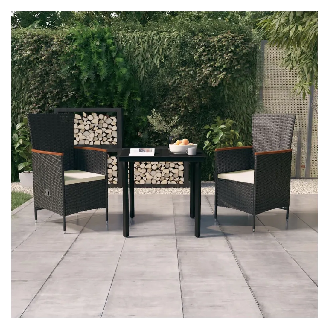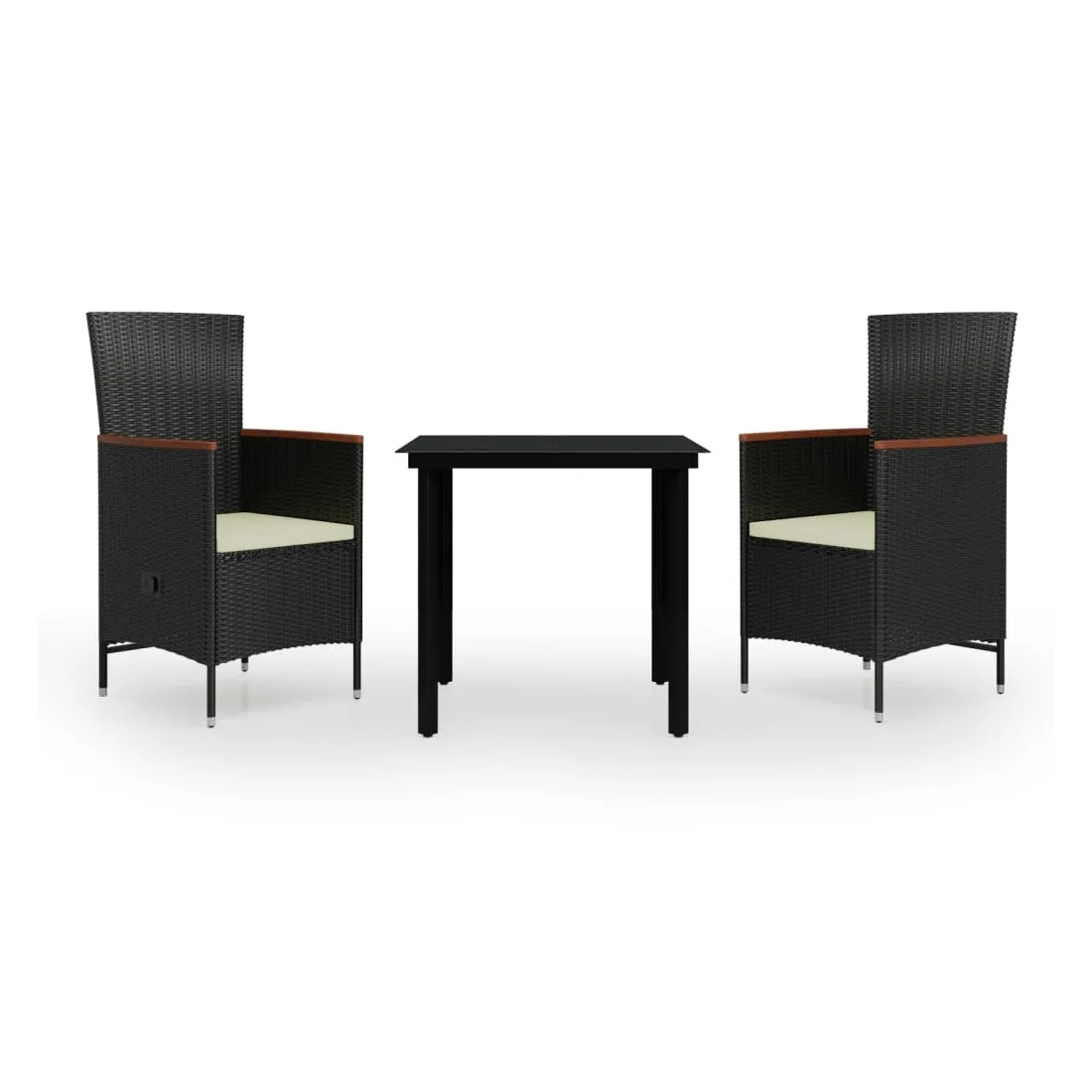 Ensemble à manger de jardin avec coussins 3 pcs noir