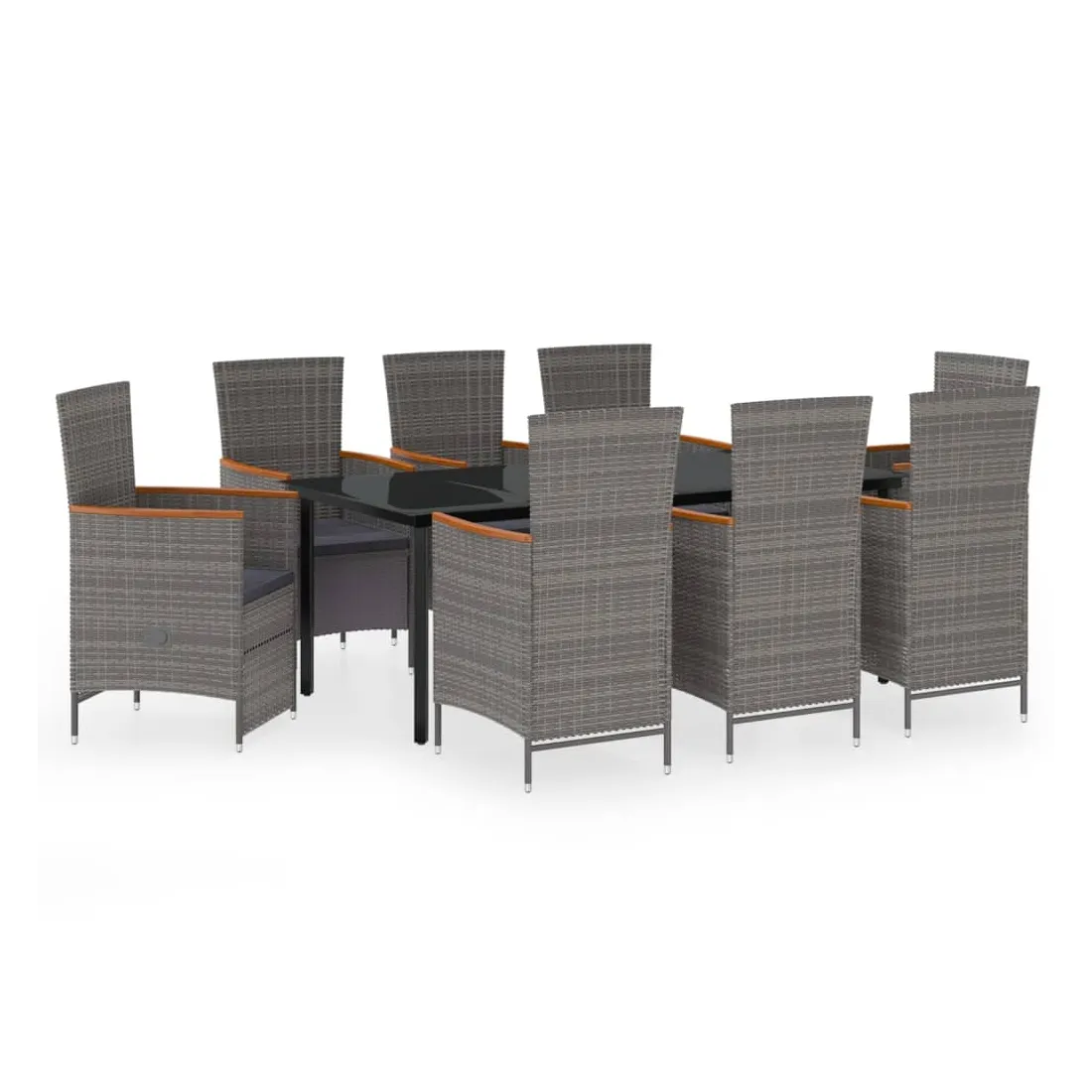 Ensemble à manger de jardin avec coussins 9 pcs Gris
