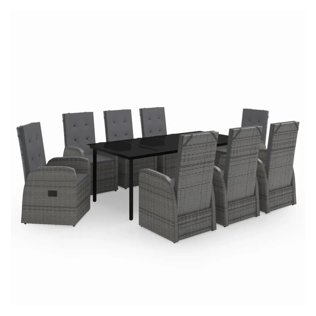 Ensemble à manger de jardin avec coussins 9 pcs Gris