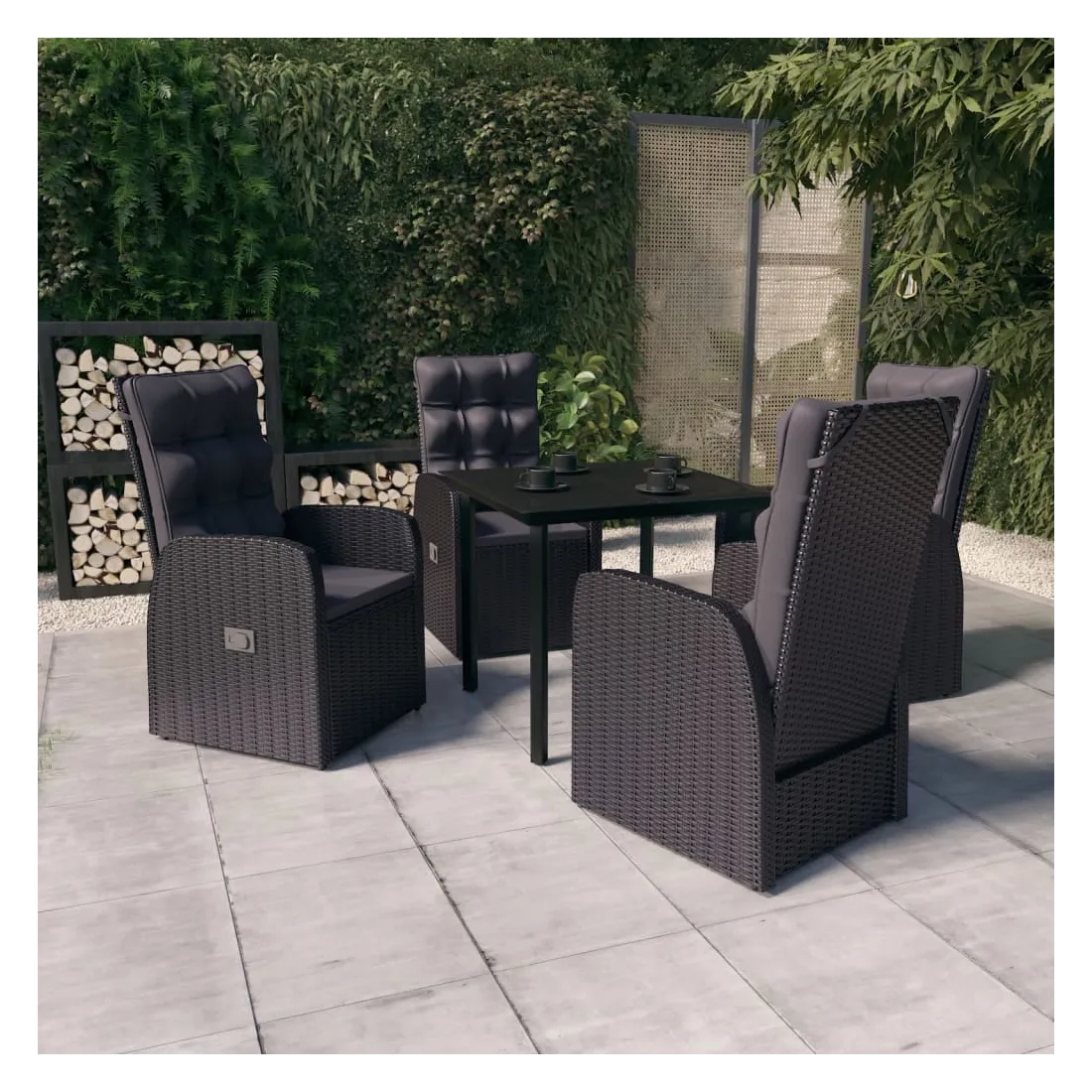 Ensemble à manger de jardin avec coussins 5 pcs Noir