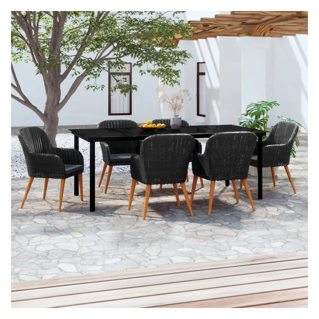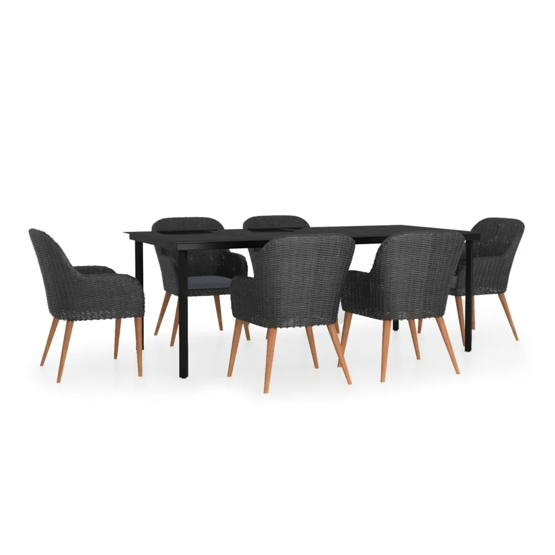 Ensemble à manger de jardin avec coussins 7 pcs Noir