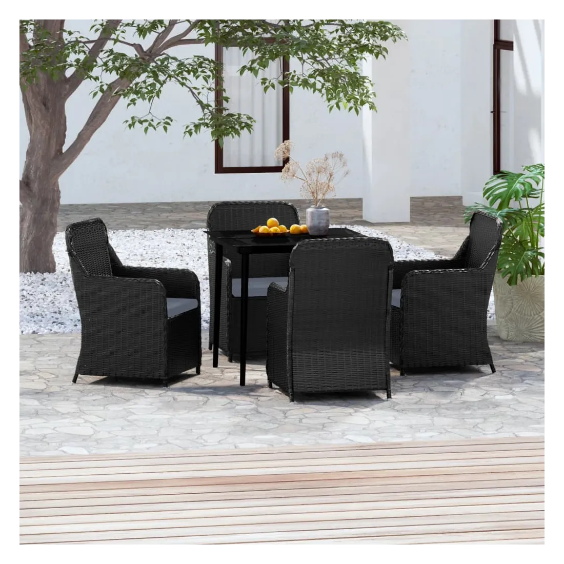 Ensemble à manger de jardin avec coussins 5 pcs Noir