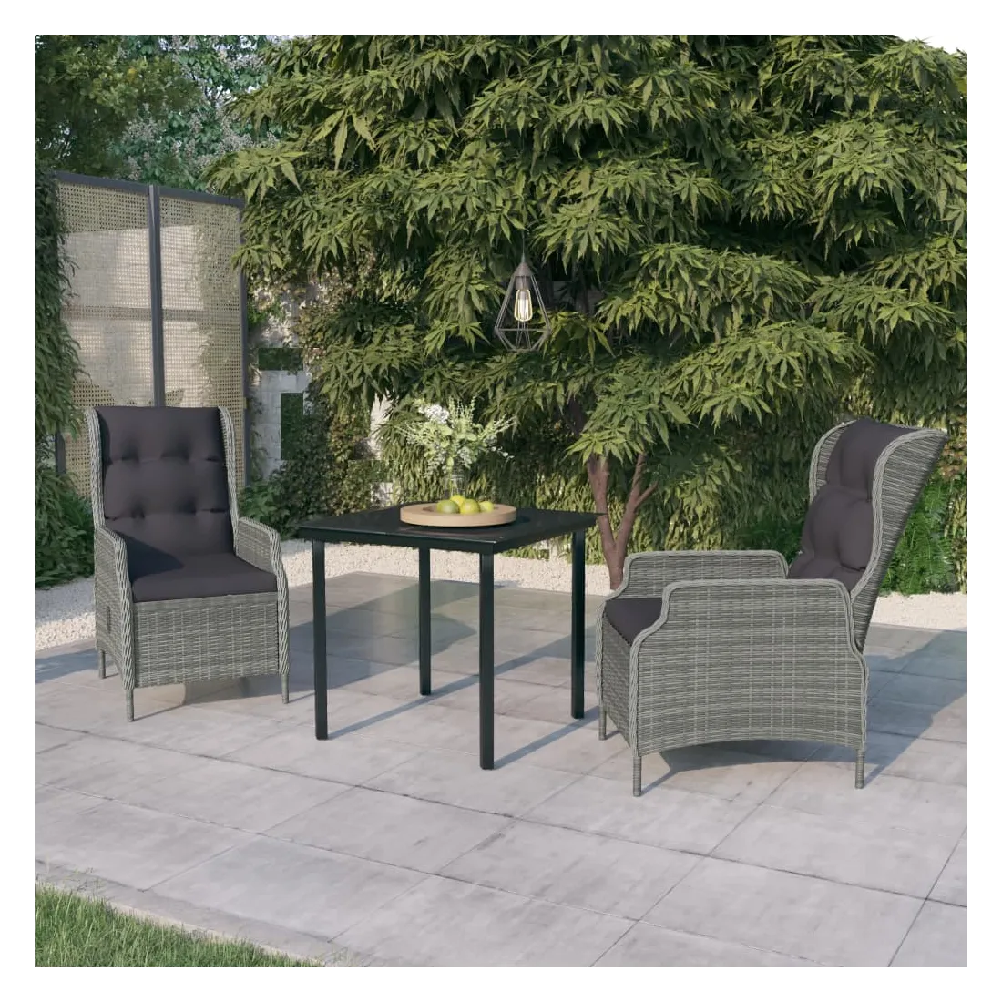 Profitez d'un bon repas ou d'un thé l'après-midi dans votre espace extérieur avec cet ensemble de salle à manger de jardin ! Ayant un design élégant, il deviendra le point central de votre jardin et de votre terrasse ! Cet ensemble de salle à manger d'extérieur pratique est doté d'un cadre en acier, ce qui le rend solide et robuste. Les chaises inclinables de jardin sont fabriquées en résine tressée résistante à l'eau et sans entretien, ce qui les rend parfaites pour une utilisation en extérieur. Les coussins bien rembourrés ajoutent un confort supplémentaire à vos repas. Les housses des coussins sont équipées d'une fermeture éclair et sont amovibles et lavables. Grâce au mécanisme de levage à gaz, le dossier est également réglable pour s'adapter à vos positions. En touchant le bouton