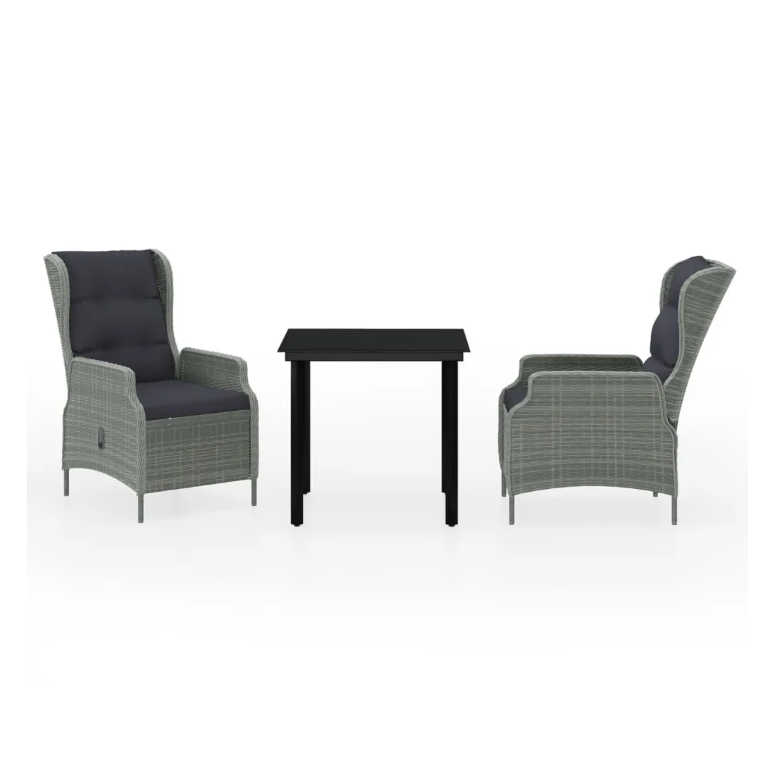 Profitez d'un bon repas ou d'un thé l'après-midi dans votre espace extérieur avec cet ensemble de salle à manger de jardin ! Ayant un design élégant, il deviendra le point central de votre jardin et de votre terrasse ! Cet ensemble de salle à manger d'extérieur pratique est doté d'un cadre en acier, ce qui le rend solide et robuste. Les chaises inclinables de jardin sont fabriquées en résine tressée résistante à l'eau et sans entretien, ce qui les rend parfaites pour une utilisation en extérieur. Les coussins bien rembourrés ajoutent un confort supplémentaire à vos repas. Les housses des coussins sont équipées d'une fermeture éclair et sont amovibles et lavables. Grâce au mécanisme de levage à gaz, le dossier est également réglable pour s'adapter à vos positions. En touchant le bouton sur le côté, le dossier peut s'incliner, pour une position confortable. En outre, le dessus de table en verre lisse est facile à nettoyer à l'aide d'un chiffon humide et est excellent pour placer des repas, des boissons et d'autres objets décoratifs. Remarque : afin de prolonger la durée de vie des meubles d'extérieur, nous vous recommandons de les protéger avec une housse imperméable.