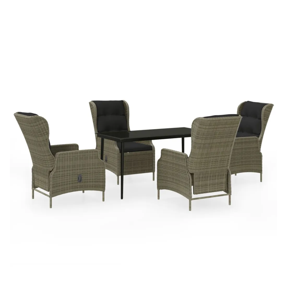 Profitez d'un bon repas ou d'un thé l'après-midi dans votre espace extérieur avec cet ensemble de salle à manger de jardin ! Ayant un design élégant, il deviendra le point central de votre jardin et de votre terrasse ! Cet ensemble de salle à manger d'extérieur pratique est doté d'un cadre en acier, ce qui le rend solide et robuste. Les chaises inclinables de jardin sont fabriquées en résine tressée résistante à l'eau et sans entretien, ce qui les rend parfaites pour une utilisation en extérieur. Les coussins bien rembourrés ajoutent un confort supplémentaire à vos repas. Les housses des coussins sont équipées d'une fermeture éclair et sont amovibles et lavables. Grâce au mécanisme de levage à gaz, le dossier est également réglable pour s'adapter à vos positions. En touchant le bouton