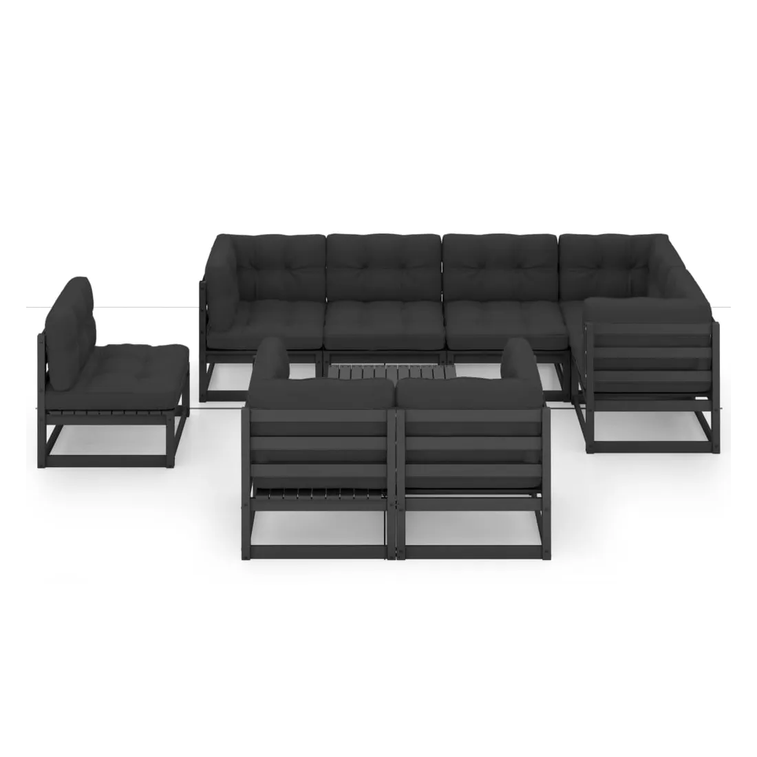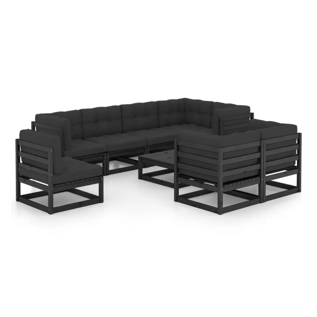 Salon de jardin 9 pcs avec coussins Bois de pin massif