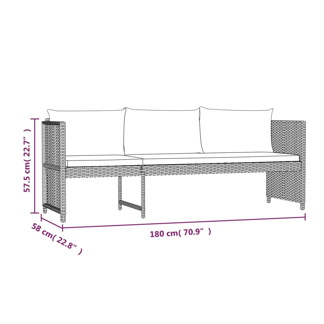 - Dimensions du canapé à 3 places : 180 x 58 x 57,5 cm (l x P x H)
